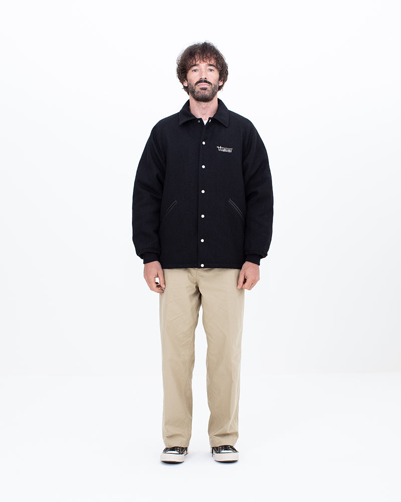 毛と麻で織り上げたツイル生地を使用したダウンジャケット