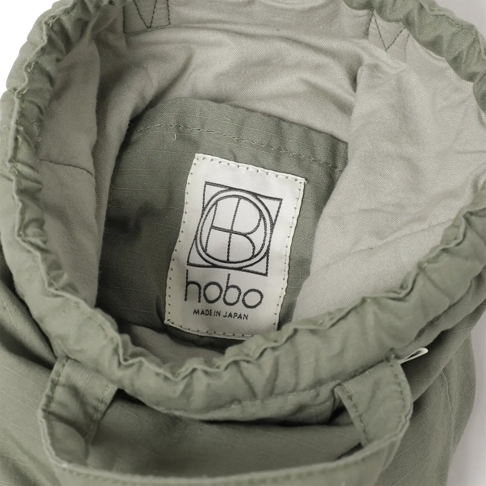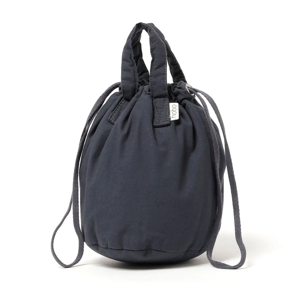 両サイドのコードを絞るとボディ全体が錐形になるドローストリングポーチ。