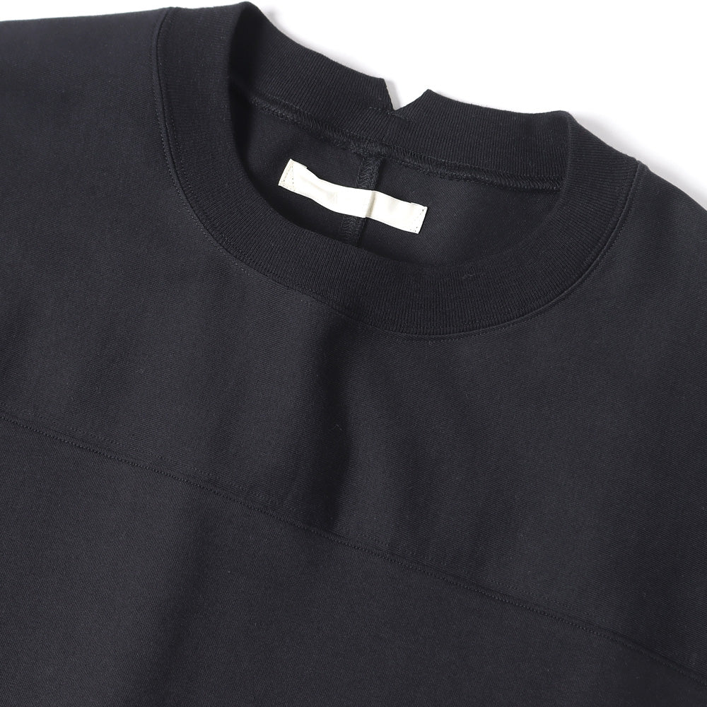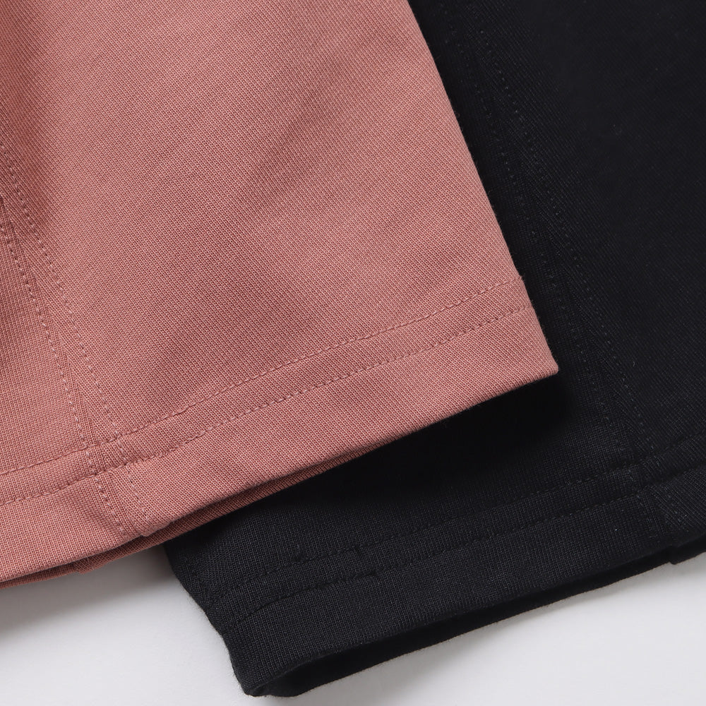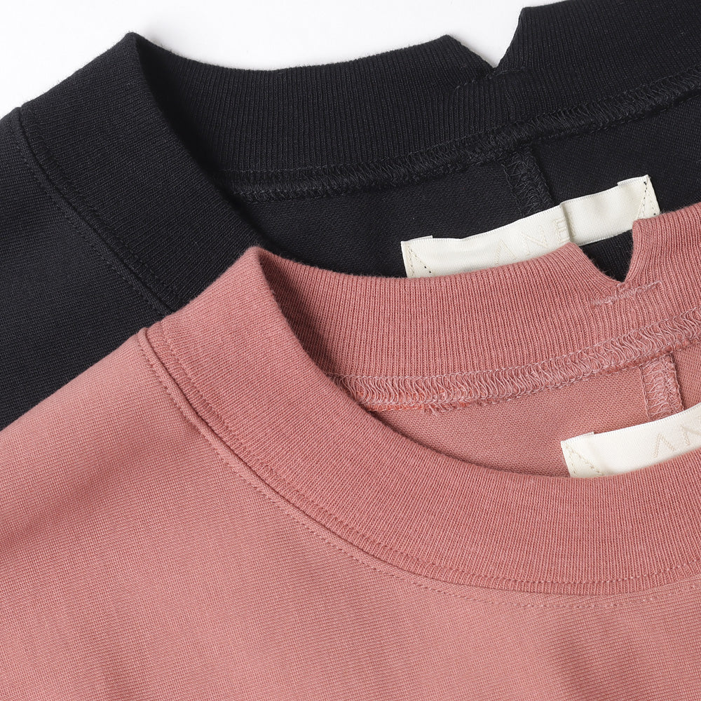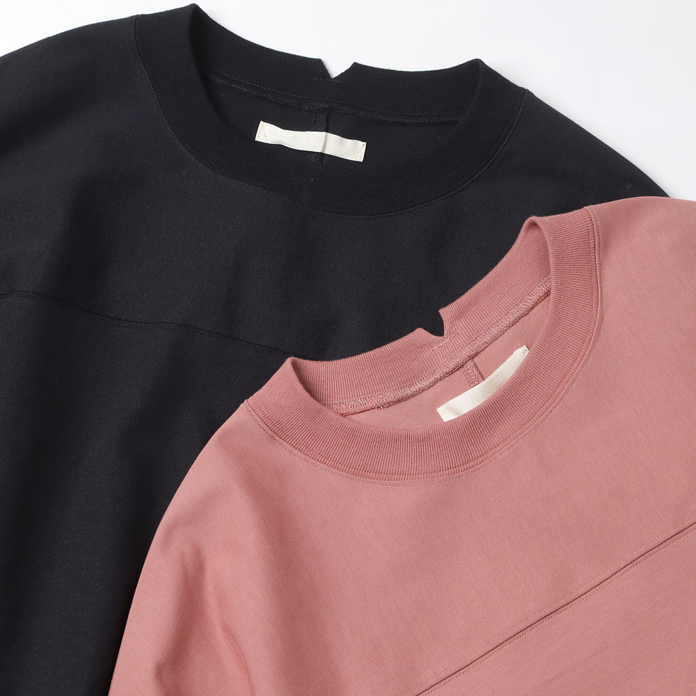 生地は希少な超長綿を使用し、30/-を引き揃えて編み上げた度詰め天竺。しっかりした厚みながら、繊維特有のしなやかな風合いと高い耐久性が特徴です。