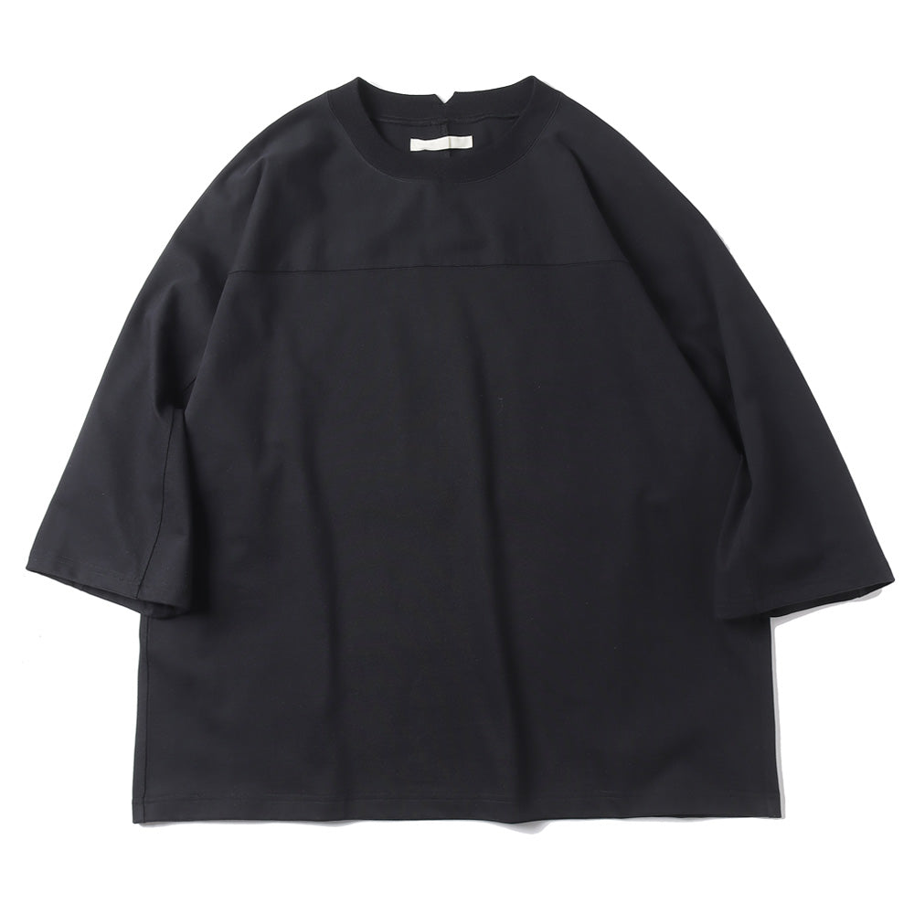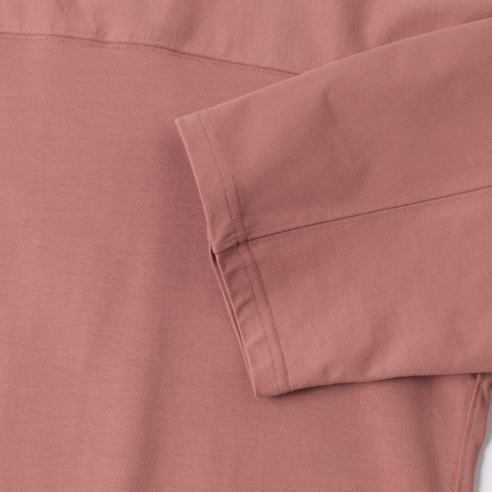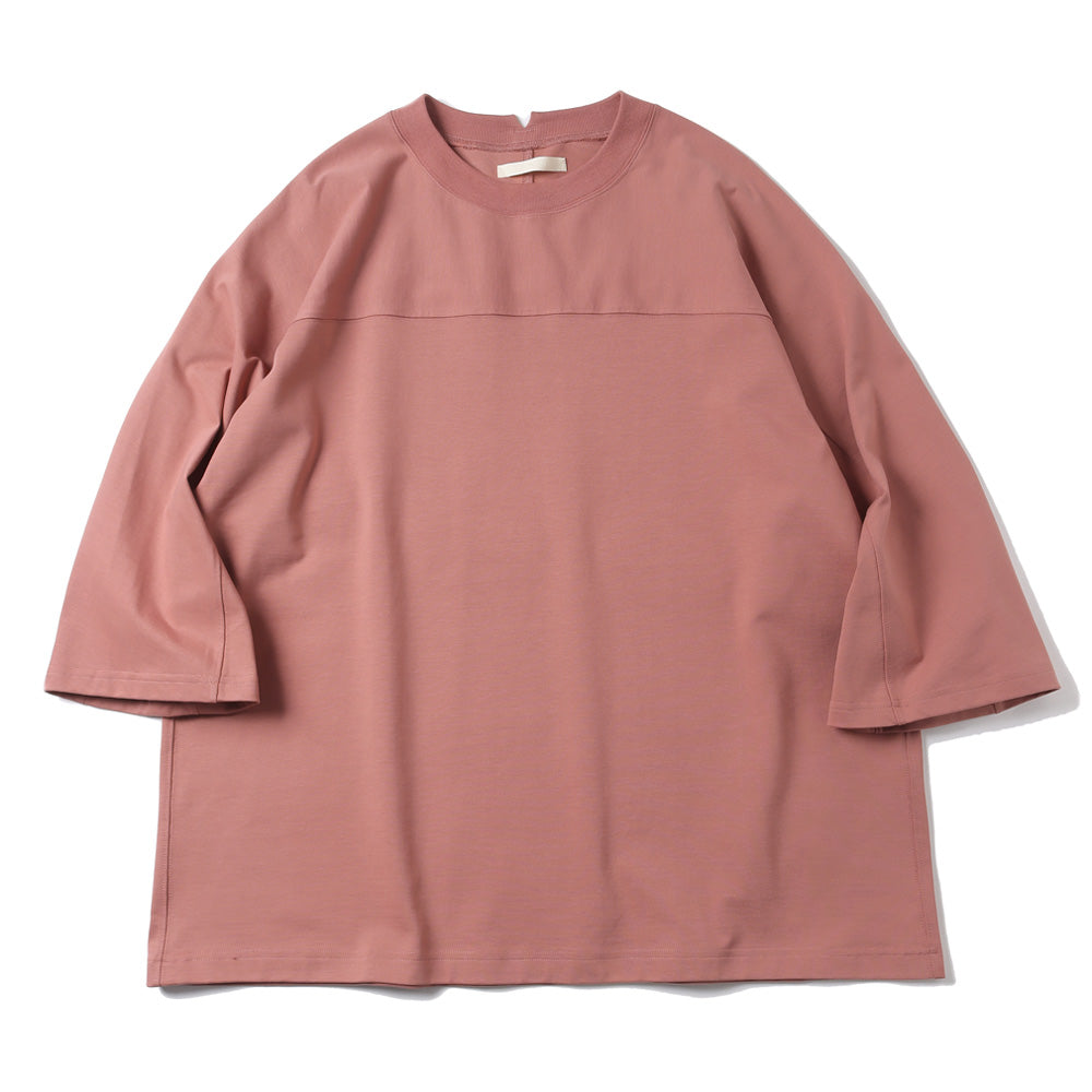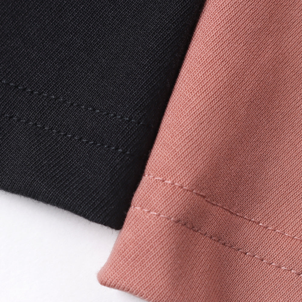 生地は希少な超長綿を使用し、30/-を引き揃えて編み上げた度詰め天竺。しっかりした厚みながら、繊維特有のしなやかな風合いと高い耐久性が特徴です。