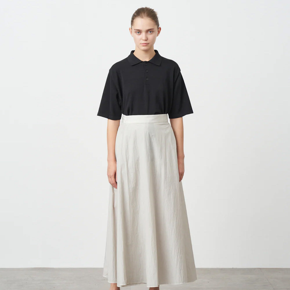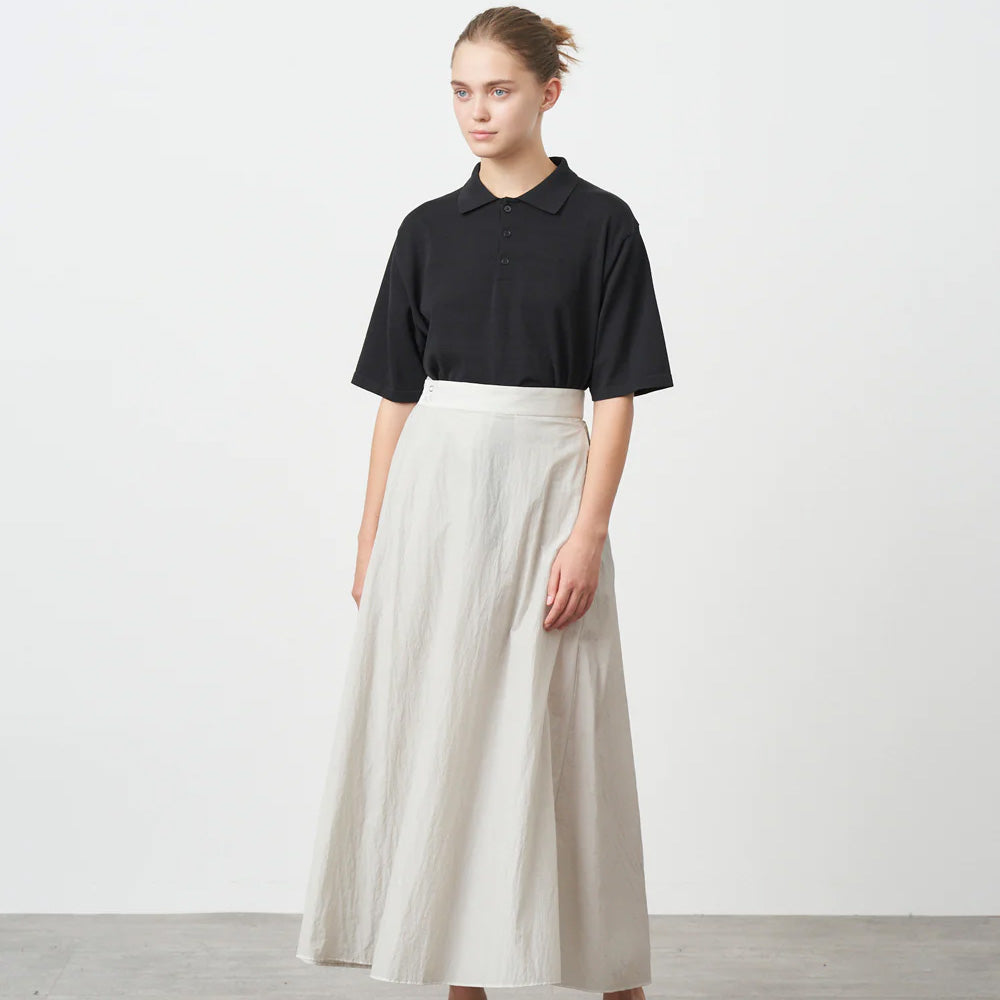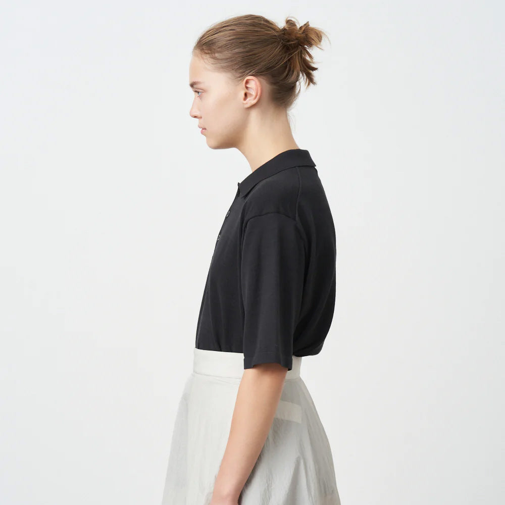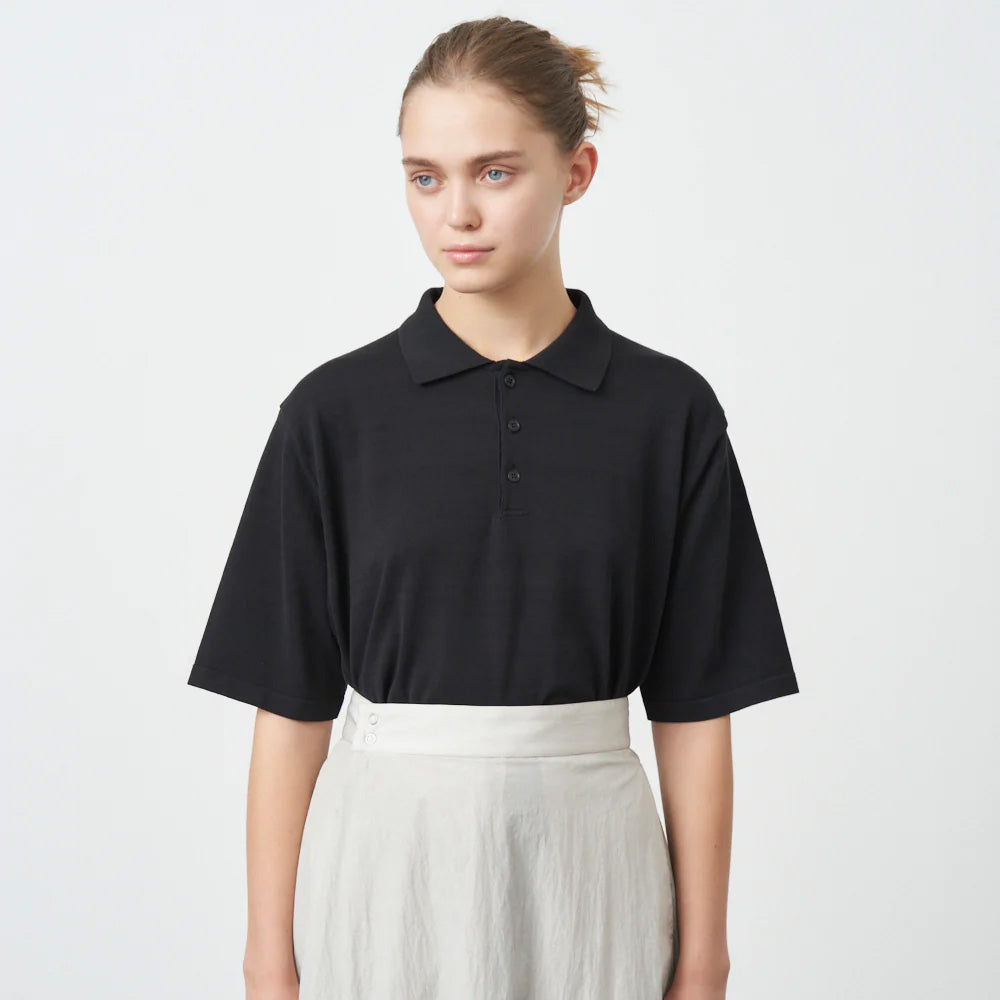 ややオーバーサイズなボックスシルエットが特徴の半袖ポロセーターです。18ゲージを採用し、限界度目で編立ることで、特有の繊細な目面とサラっとした着心地に仕上げました。裾はリブで縮まないように、Tシャツのような仕様を採用しています。