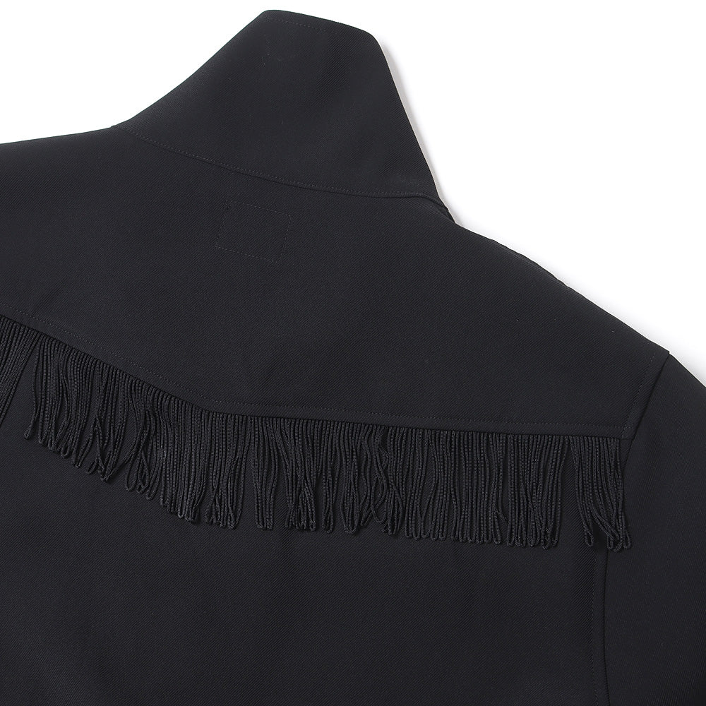 ヨーク周りにフリンジ飾りをあしらったユニークなアイテム。