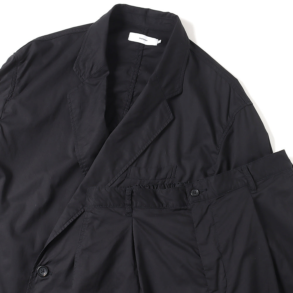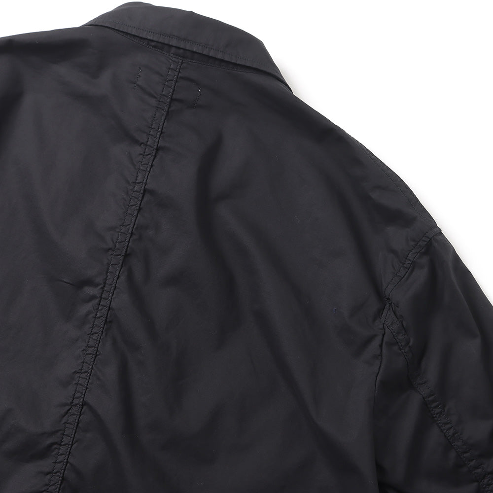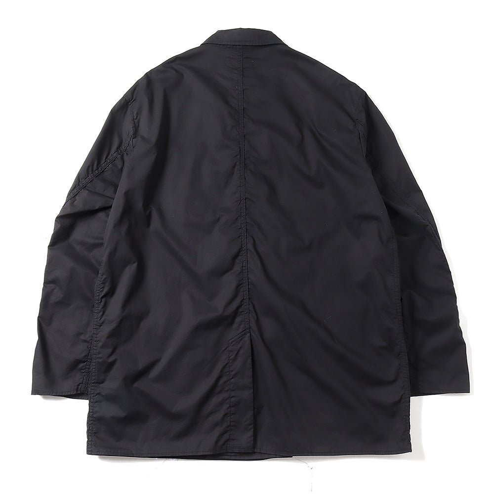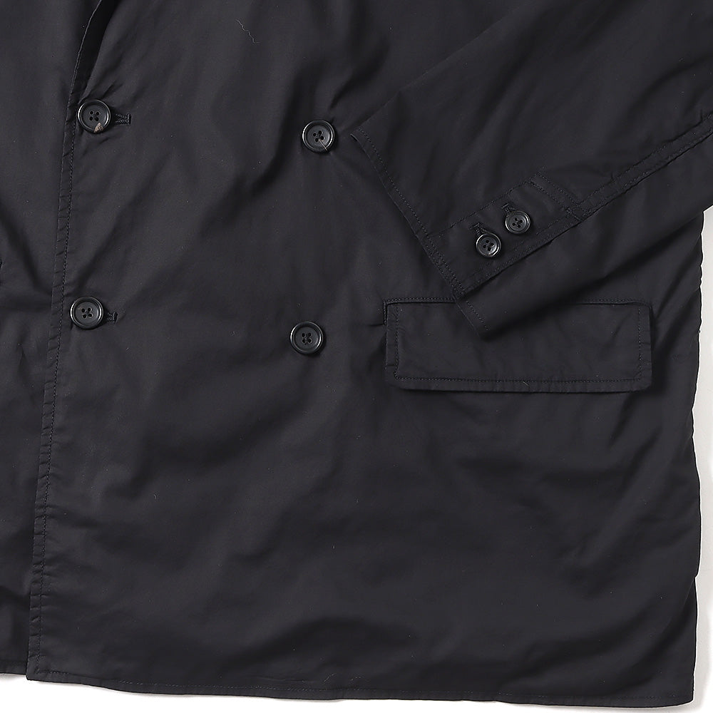 非常に繊細でありながら高密度に織り上げることで滑らかな肌触りと程よいハリ感が特徴のコットンタイプライター。その生地を表裏ともに使用した無双仕立てのダブルジャケット。太番手の糸で巻き縫いし、製品染めをすることで縮みによるアタリと独特な風合いが魅力。ボリュームを持たせたボックスシルエットで3サイズ展開で体型に合わせたサイズ感を楽しめる。