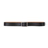 バックルのピン、ホールがなくフリーサイズで微調整が簡単にできるのベルト。使用したレザーはオイルをたっぷりと含み、しっとりとした質感としなやかさが特徴のイタリア産の牛ショルダー。使い込むうちに艶が出て味のある経年変化を楽しめる。ベルト帯の中央を盛り、縁にステッチを飾るフェザー仕立て。