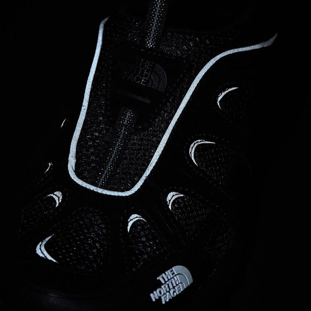アッパー素材には、通気性が高いリサイクルメッシュ生地と、耐久性がある天然皮革の組み合わせ。