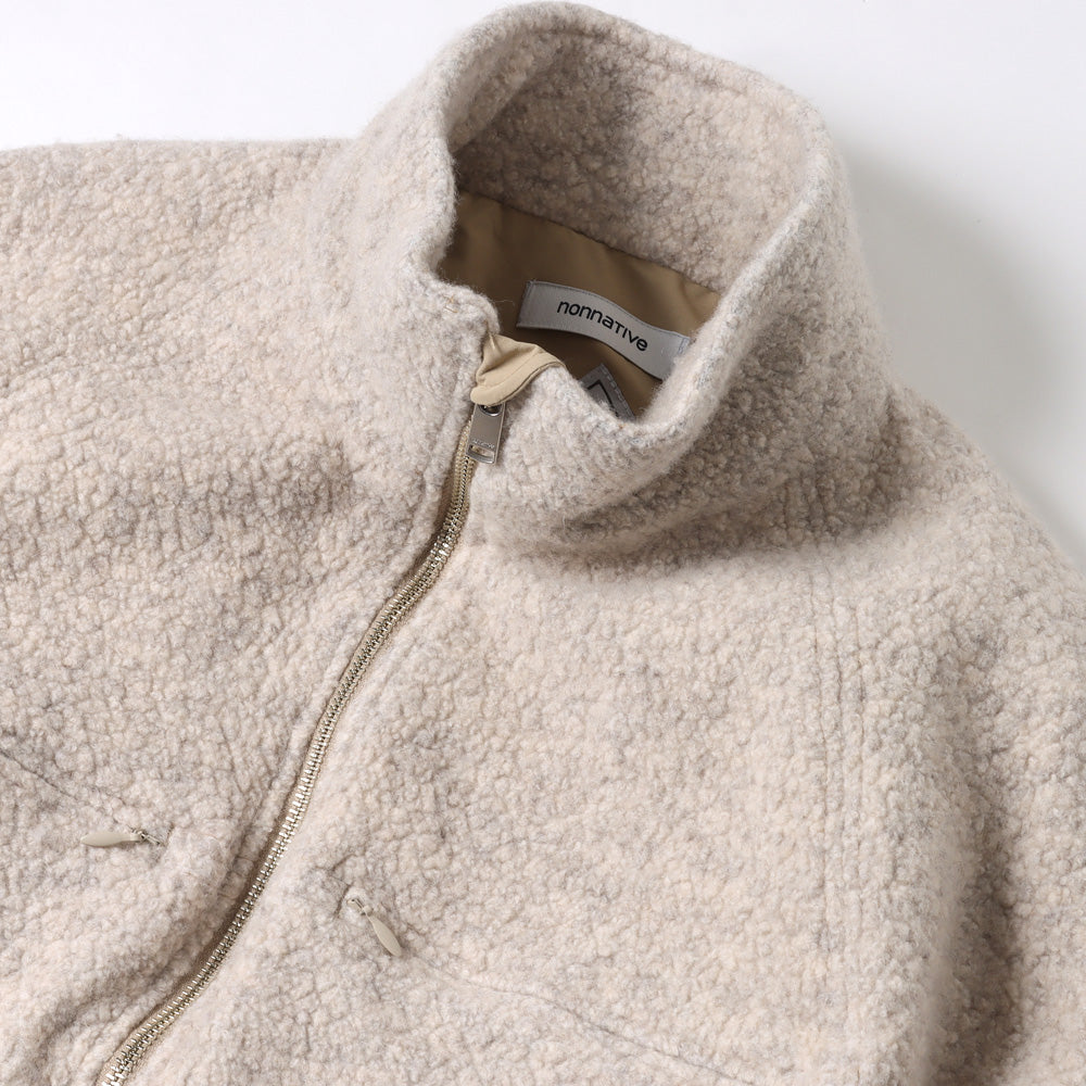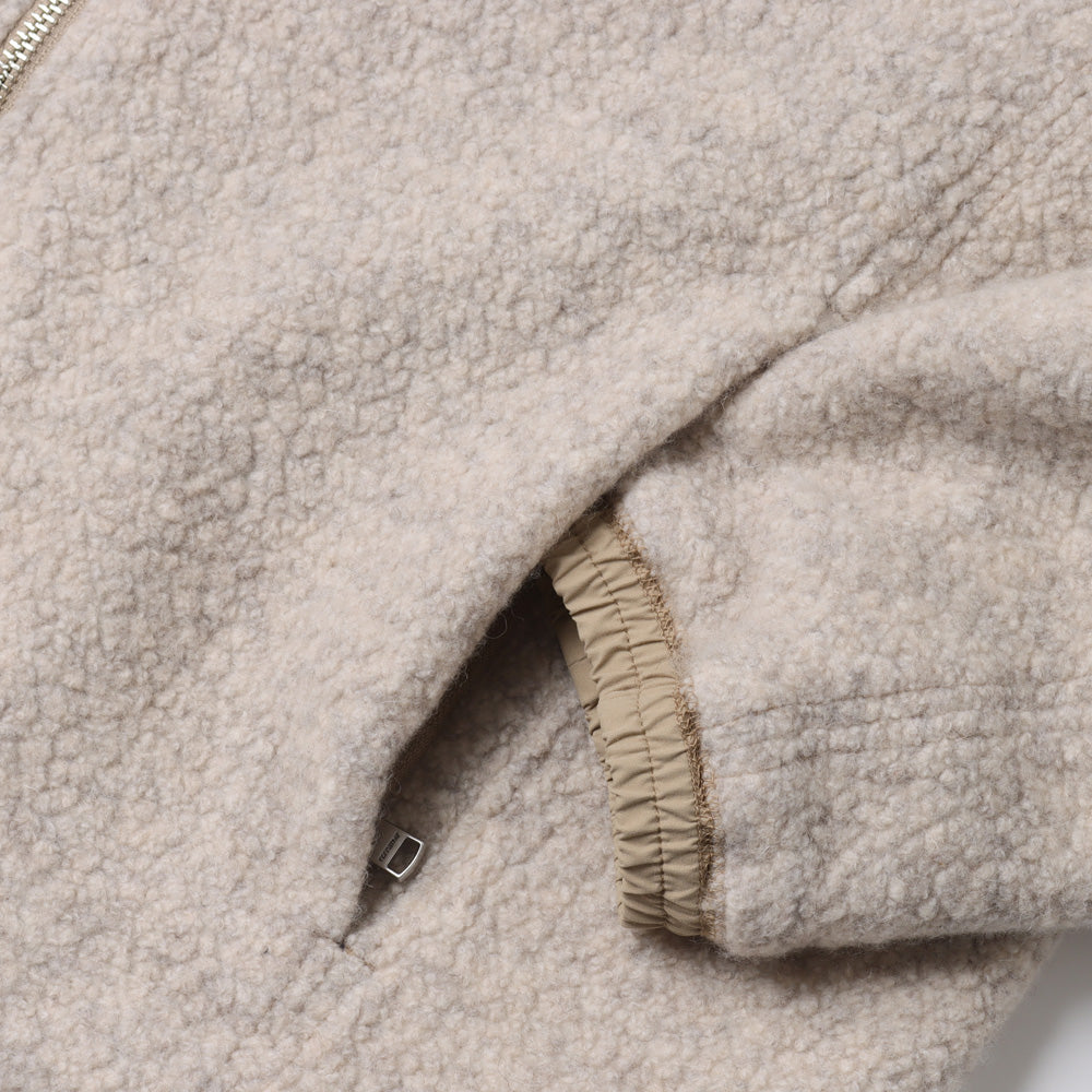 やや毛足が長いウール混のパイル地を使用したフリースブルゾン。