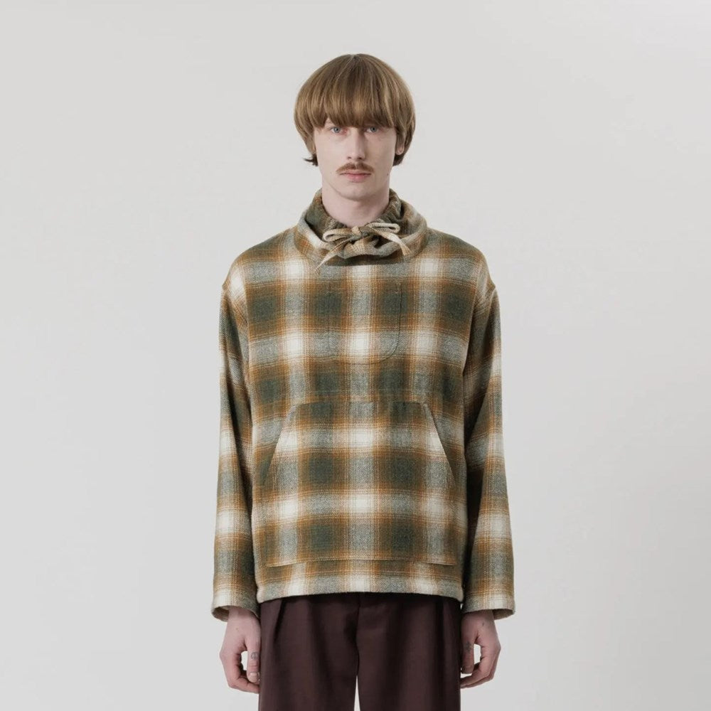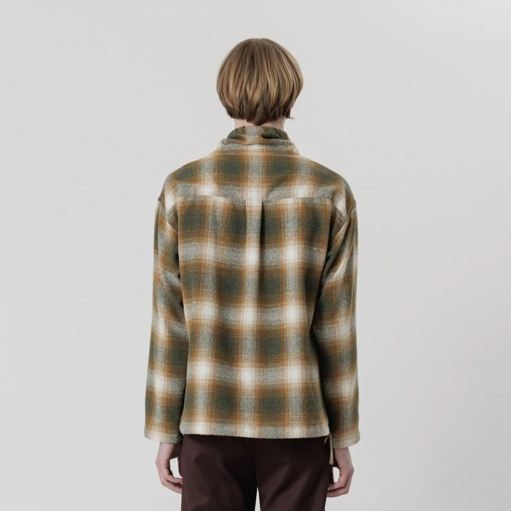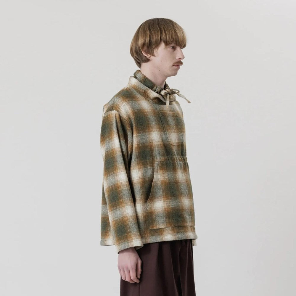 コットンネル生地を使用したハイネックプルオーバーシャツです。