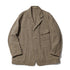 3ボタン・シングルフロントのシャツジャケットは、ショルダーパッドを始めとするハンティングジャケット的な要素をフィーチャー。ワーク・カバーオール的でもある一作は、勘どころだけをユルめに設計したM.F.T.が提唱する楽ちんフィットの極み。わき、首のルーズフィットはスウェットフーディ合わせで味わいたいもの。素材はオリジナル開発の”シャドー”・グレンチェック・ツイード。