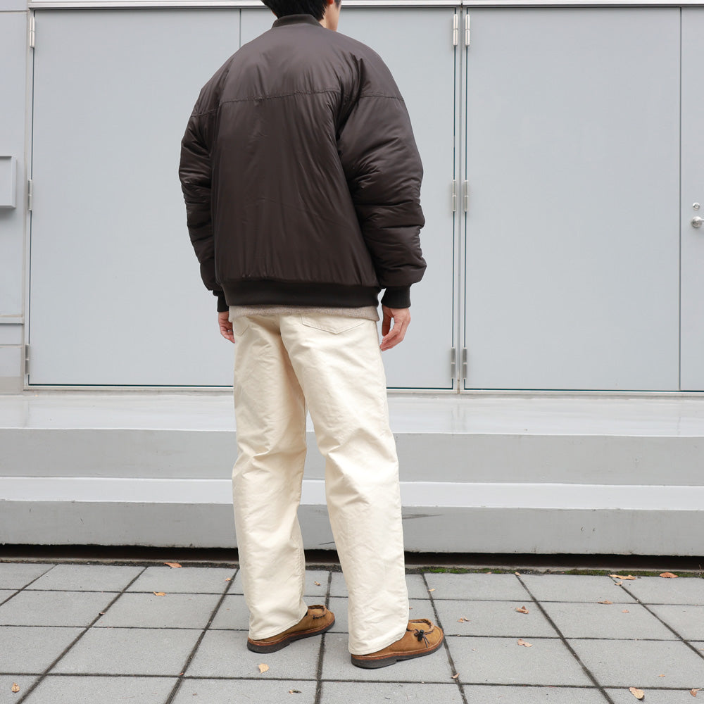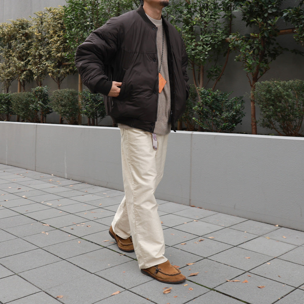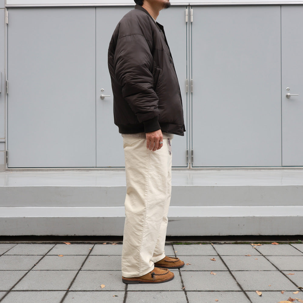 横張りの強い生地なのでデニム素材よりも少し細く見えます。