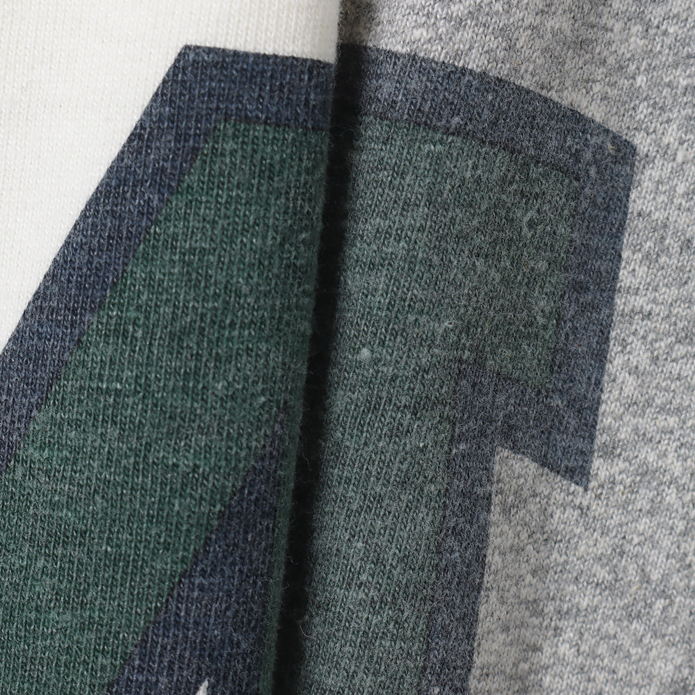 ヴィンテージの88-12 は生地が伸びてヨレやすいデメリットがありますが、それらを防ぐために、コットン部分を超長綿と超長綿の落ち綿をブレンドし、レーヨンを入れて撚り回数などを調整し、よりなめらかな肌触りと上質な質感を出すためにオリジナルのブレンドで糸を作っています。それらを度詰めに編み上げ、ヘビーウェイトで柔らかい天竺に仕上げています。