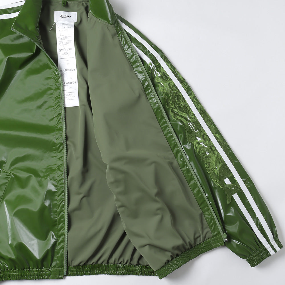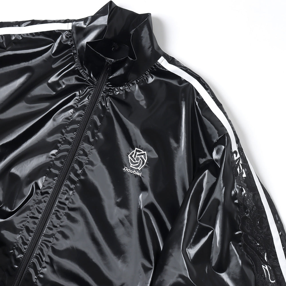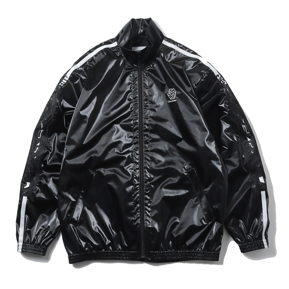 近未来的なデザインのトラックジャケットに胸にワンポイントで
