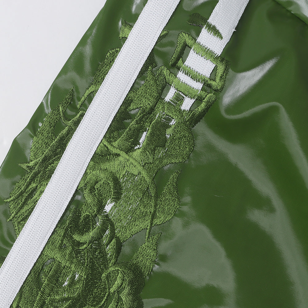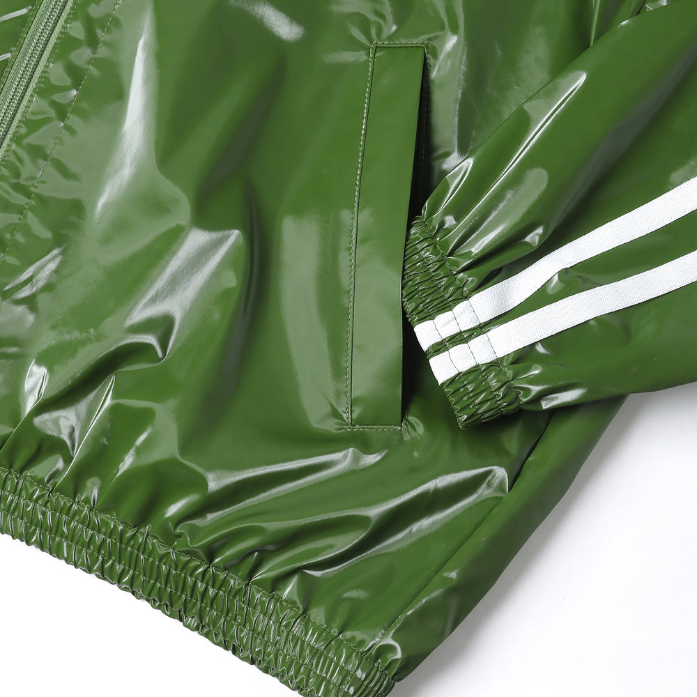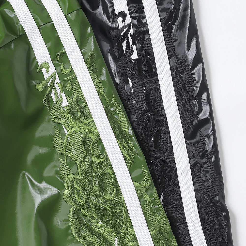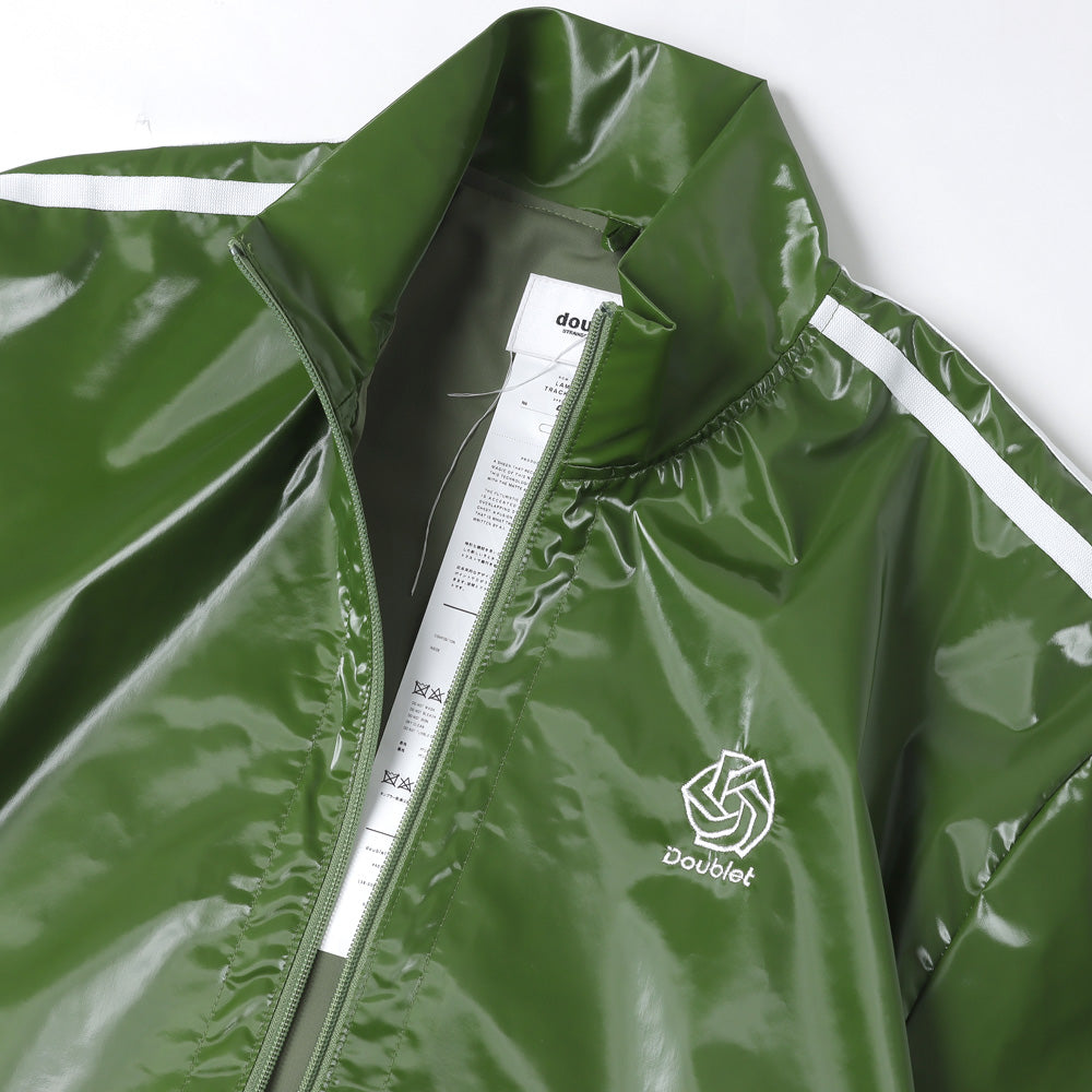 近未来的なデザインのトラックジャケットに胸にワンポイントで