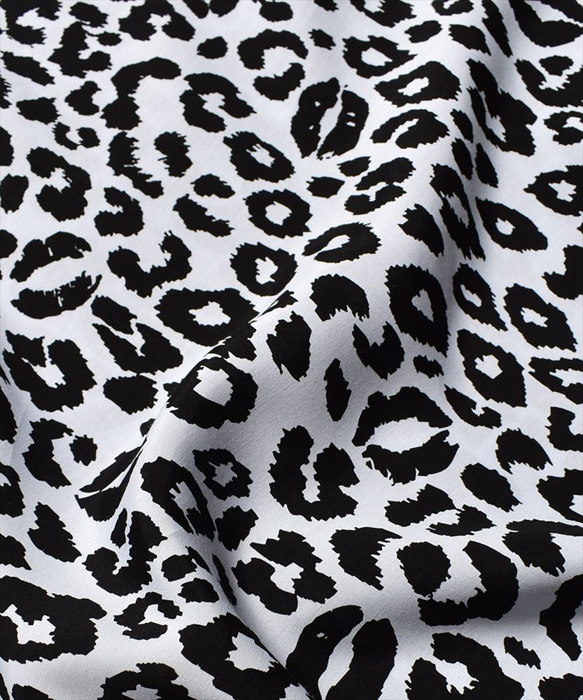 ・フィラメントとスパンを組み合わせて織られた肌触りの良いレーヨンダンプにオリジナルレオパードリップグラフィックをプリントした生地を採用