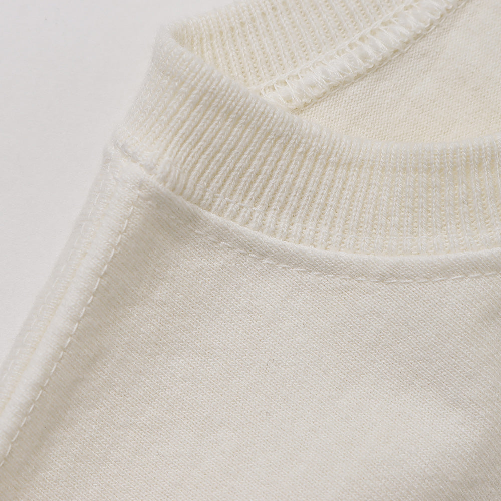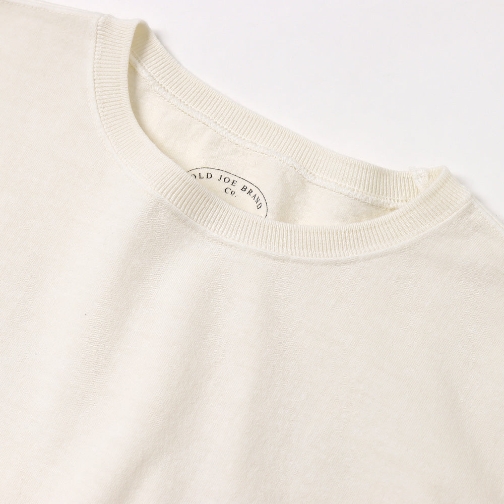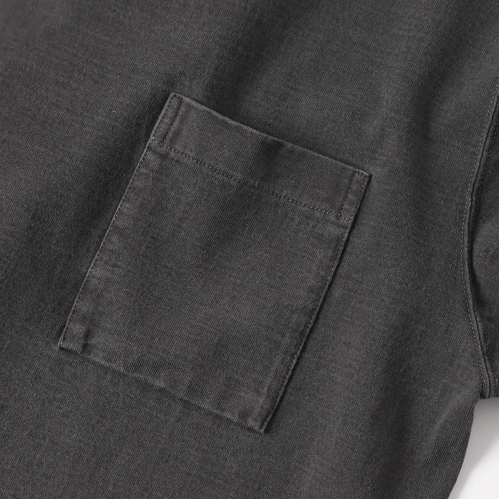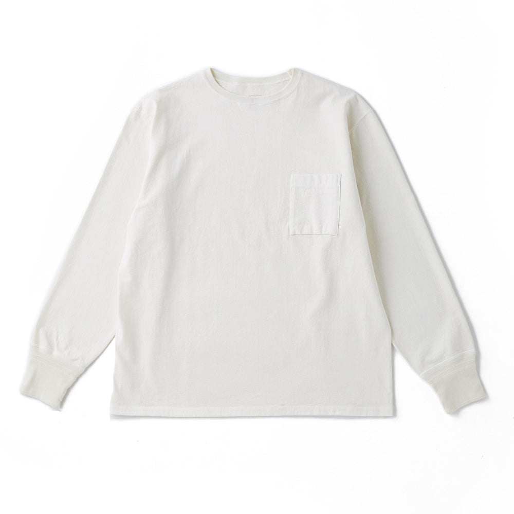 昨年から装い新たになったマテリアルは、 ドライタッチで硬めの質感が特徴の空紡糸を用いて度詰めして編み立てたオリジナル天竺、 ラフでタフ、吸湿性が高く即乾性にすぐれています。