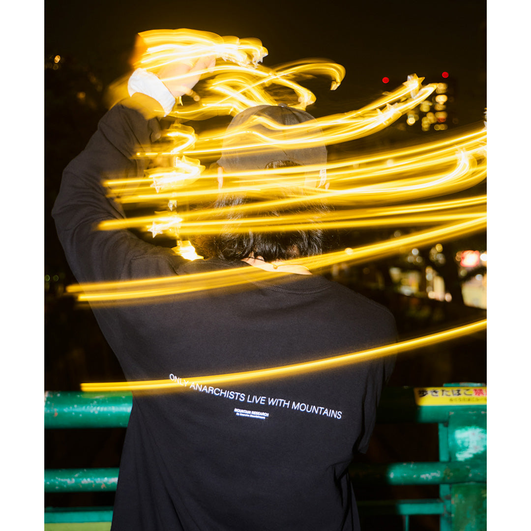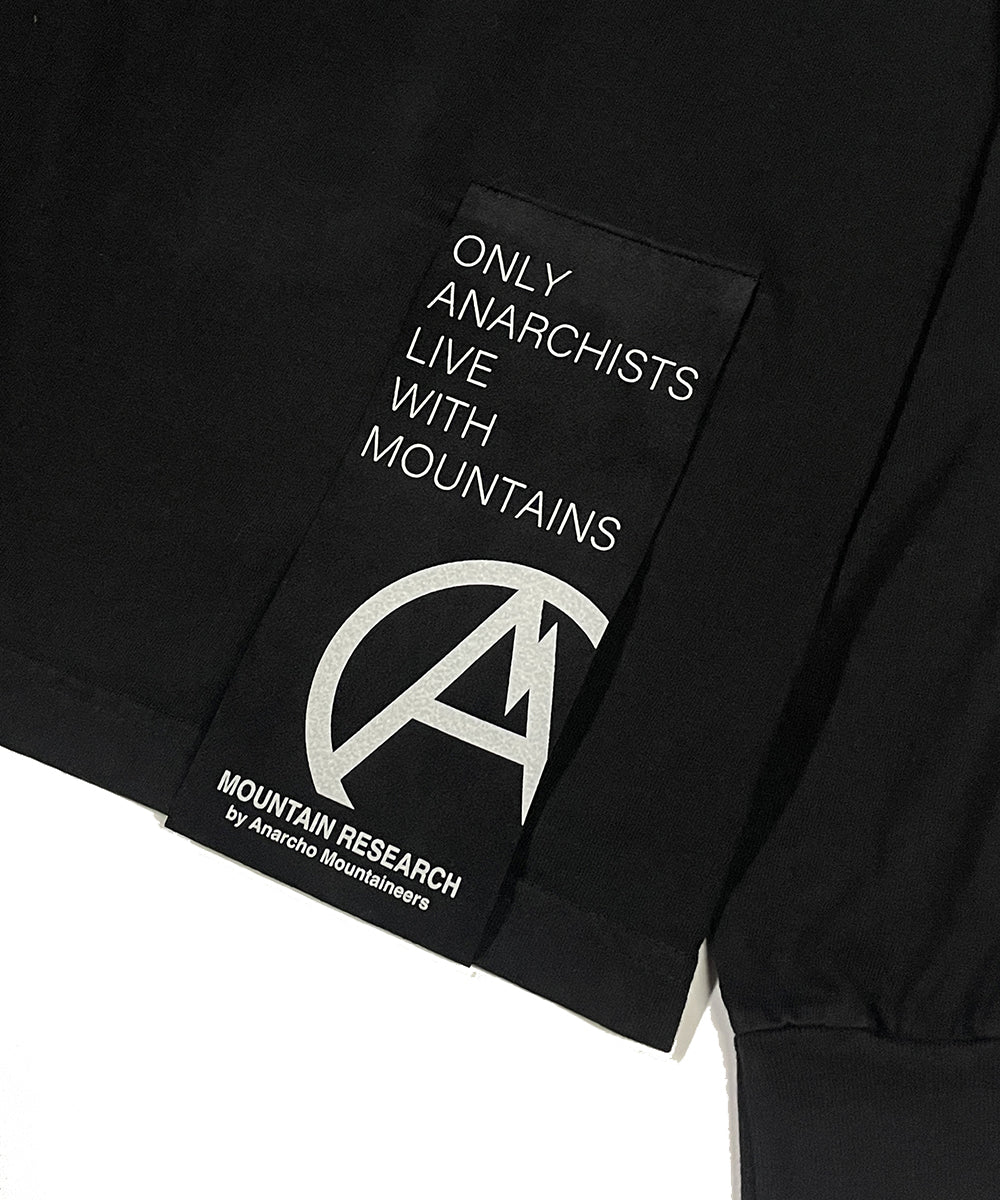 フェイクレザー製の巨大タグ、通称「メガタグ」を裾に縫いつけたコットン素材のロングスリーブTシャツ。2025年の新作では、Made in USAの丸胴ボディでお馴染みの《MINE》製Tシャツをベースに採用しています。メガタグの内側には、カードなどの収納に便利なスタッシュポケット付き。