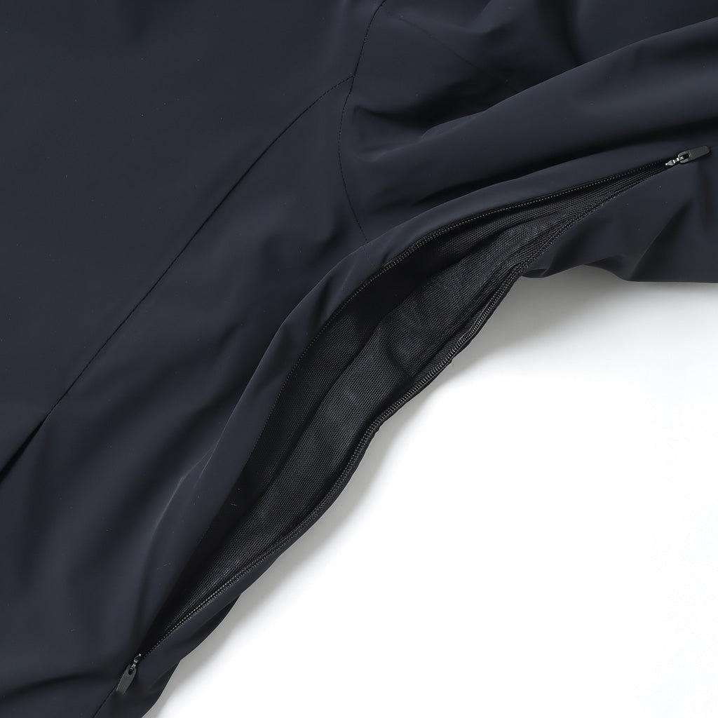 表地には防水透湿性に優れるDERMIZAX® FLEXILE MATTE 4WAY STRETCHを、中生地には光を熱へと変換し積極的な保温性能を発揮するHEAT NAVI®を採用。