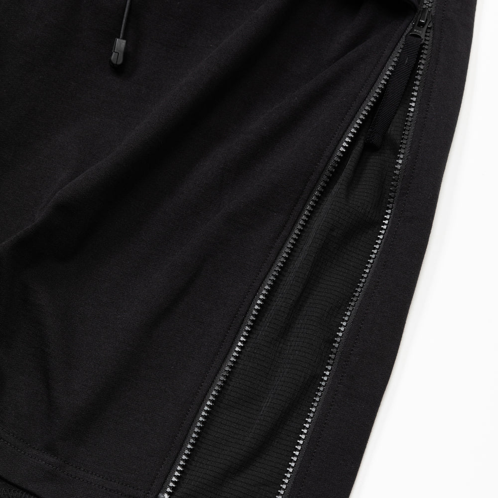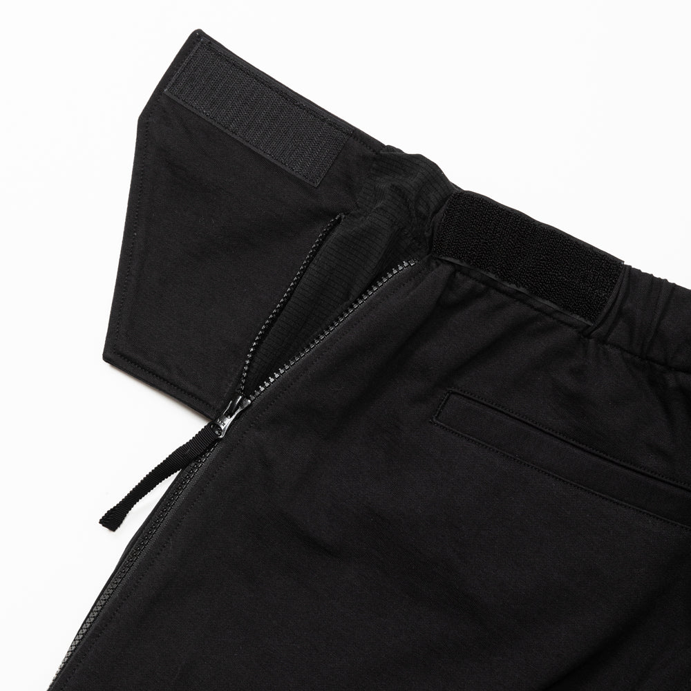 サイドにフルジップを備え、最大限の通気性を確保し、ブーツの上からでもパンツの着脱を容易にし、 アクティブな用途にも対応するイージーなショーツスタイルにしています。