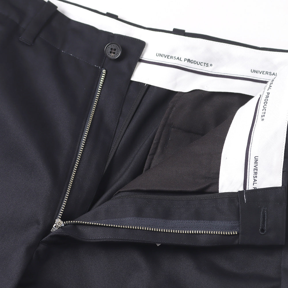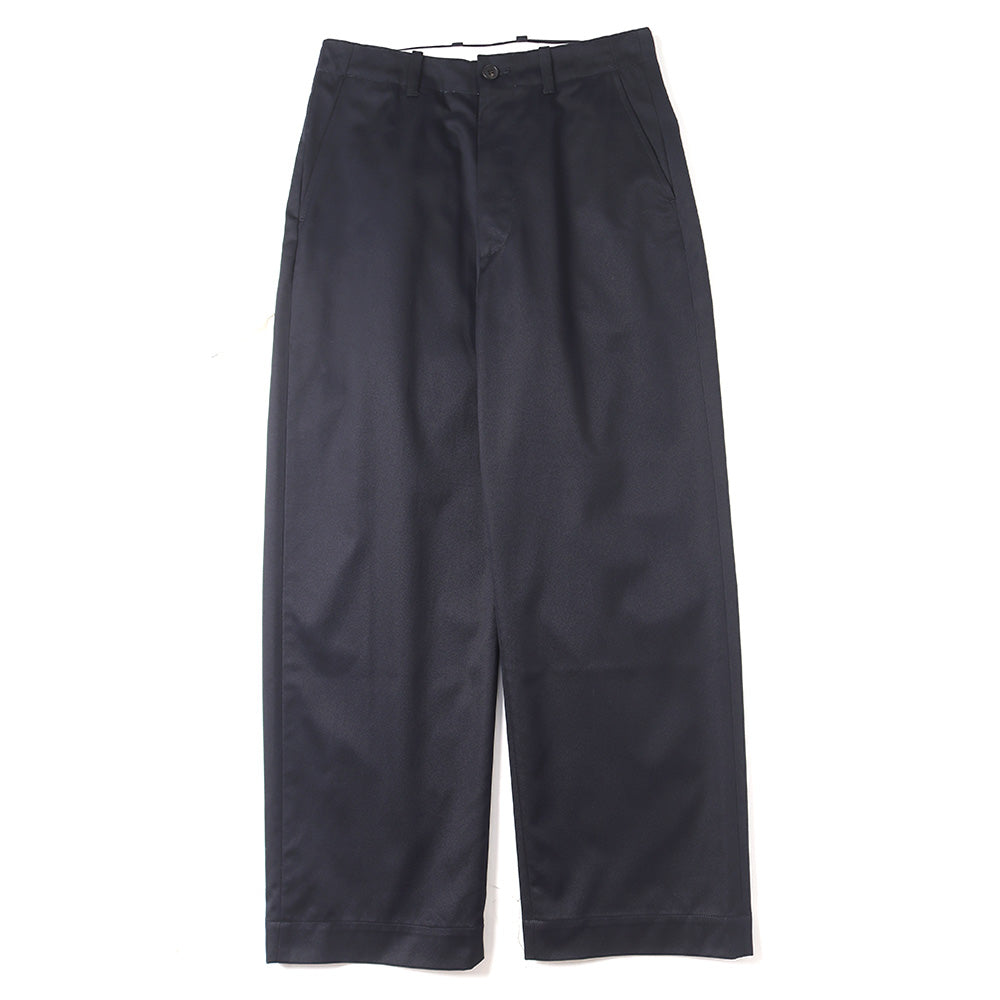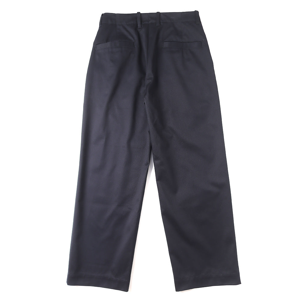 ノータックながら深くとった股上から腰回りの余裕を持たせたワイドストレートシルエットです。