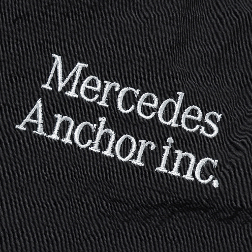 張りのある撥水加工が施されたナイロン100%の生地を使用したトラックジャケット、胸にはロゴの刺繍、脇にピスネームを取り付け、ファスナーにはオリジナルのプルタブ。