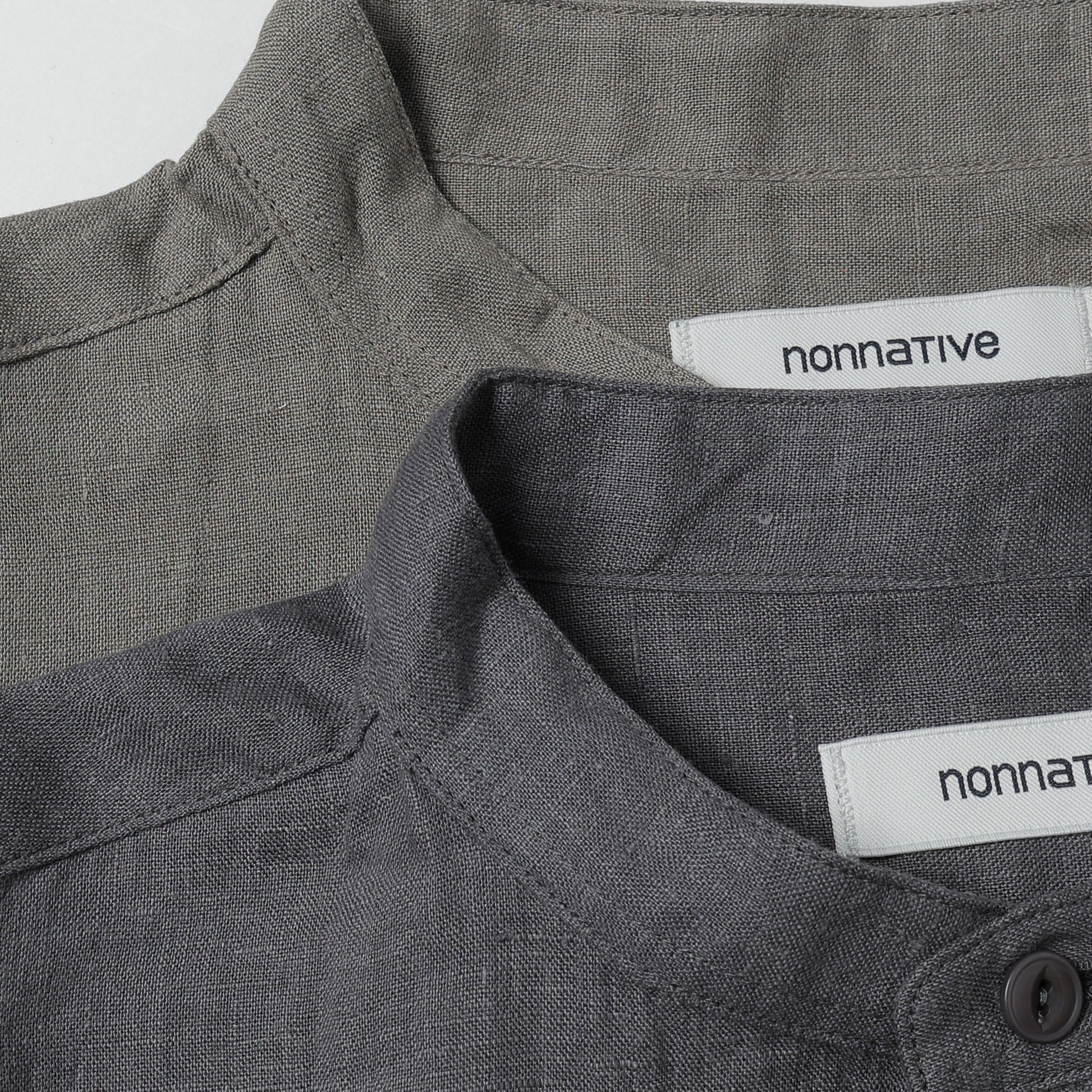 OFFICER STAND COLLAR L/S SHIRT LINEN CANVAS