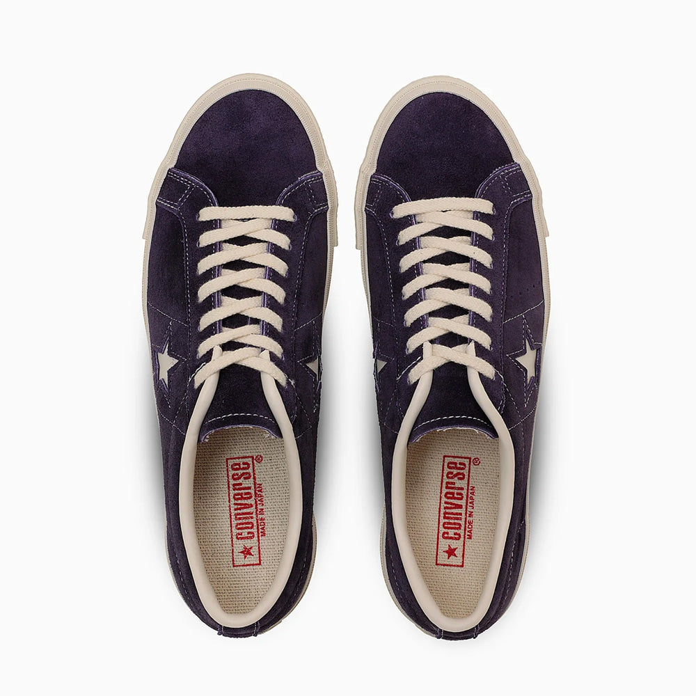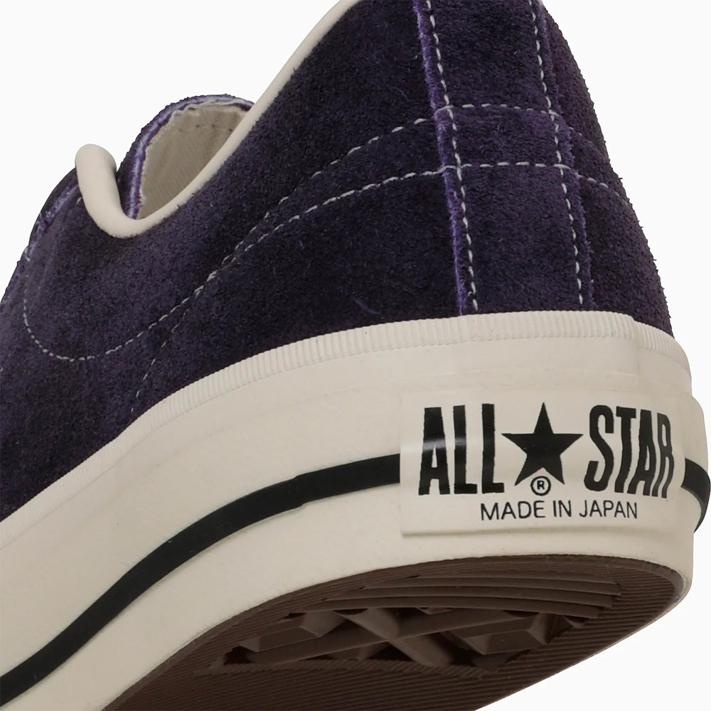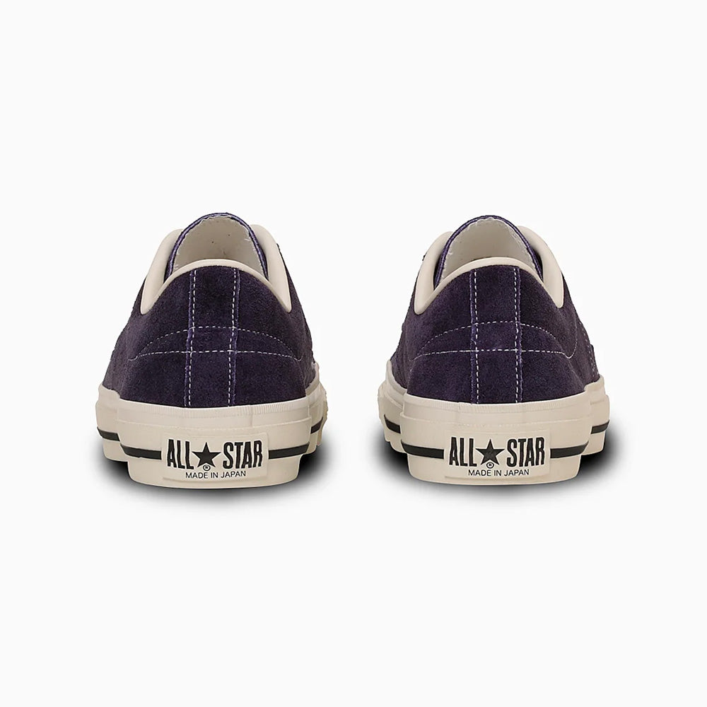 ヒールラベルの下部に印字した「MADE IN JAPAN」の文字、日本国旗をイメージしてホワイトキャンバスに赤字で印したインソールのコンバースロゴもポイント。