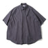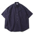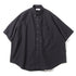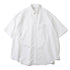 太目の糸で肉厚に仕上げたオックスフォードを使用すたオーバーサイズの半袖ボタンダウンシャツ。肩の傾斜や低く下げられたヨークの位置、アームホールの広さなど、細かなディテールを特異なバランスで仕上げたモデル。