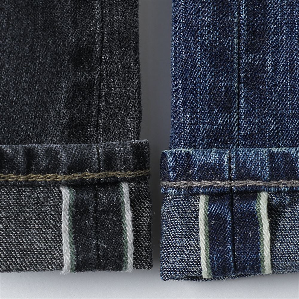 同じ糸使いで縦糸をロープ染色で色落ちを楽しめるように開発した