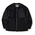 生地のかけ合わせが印象的なクルーネックラグランブルゾン。