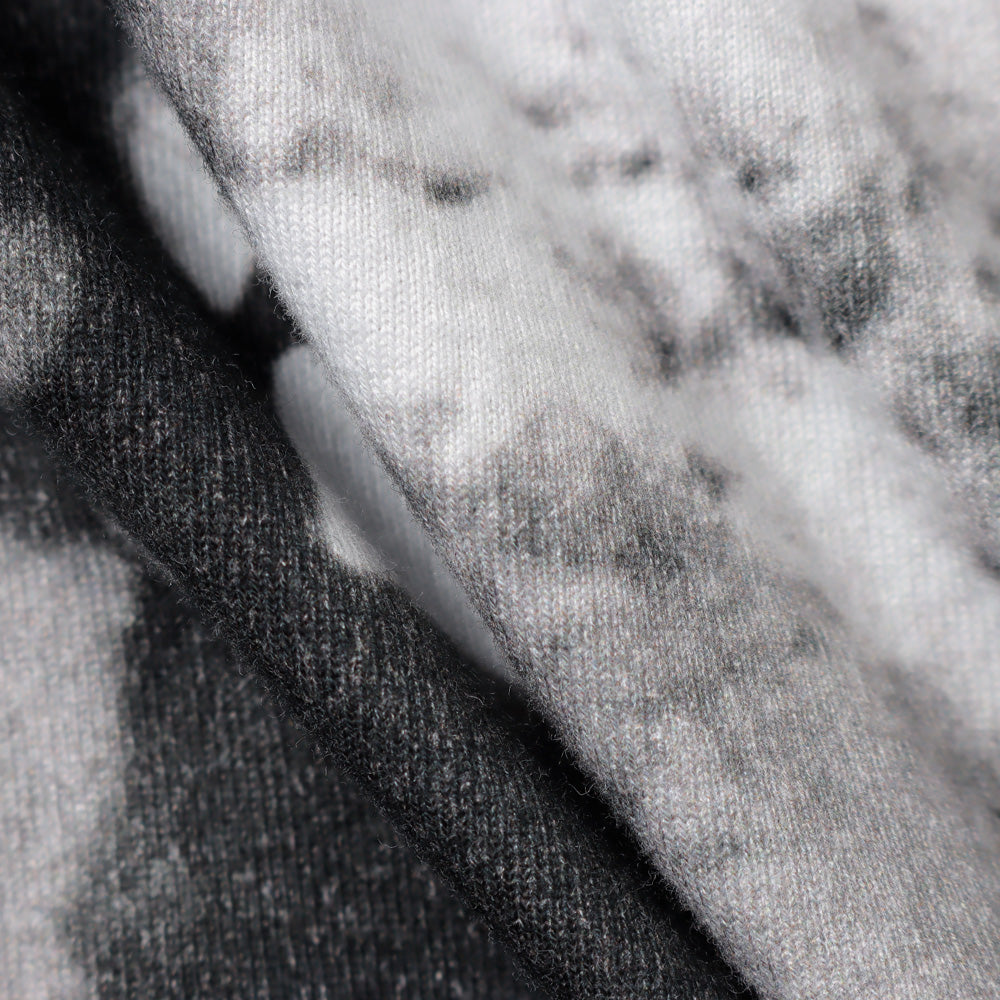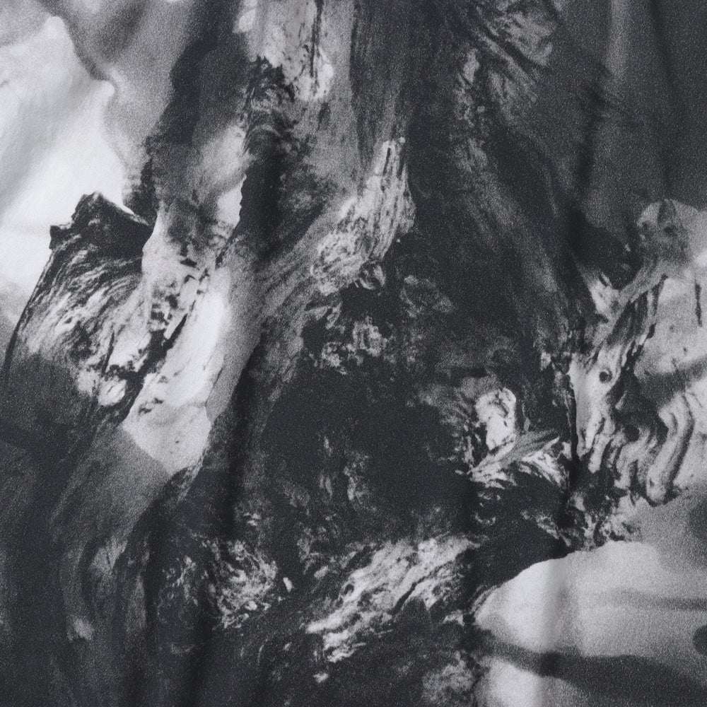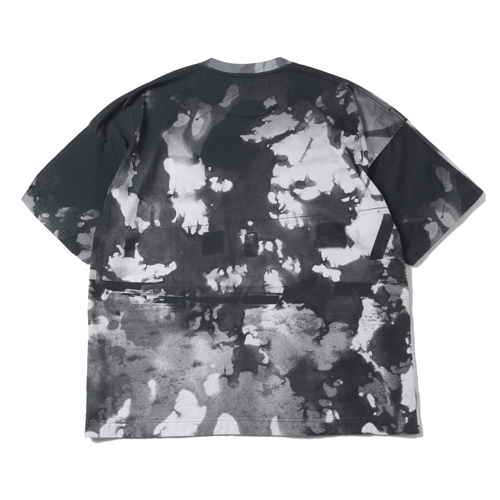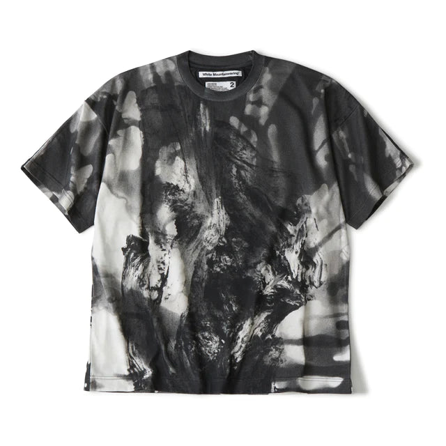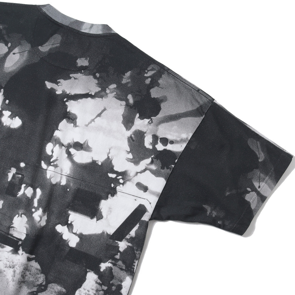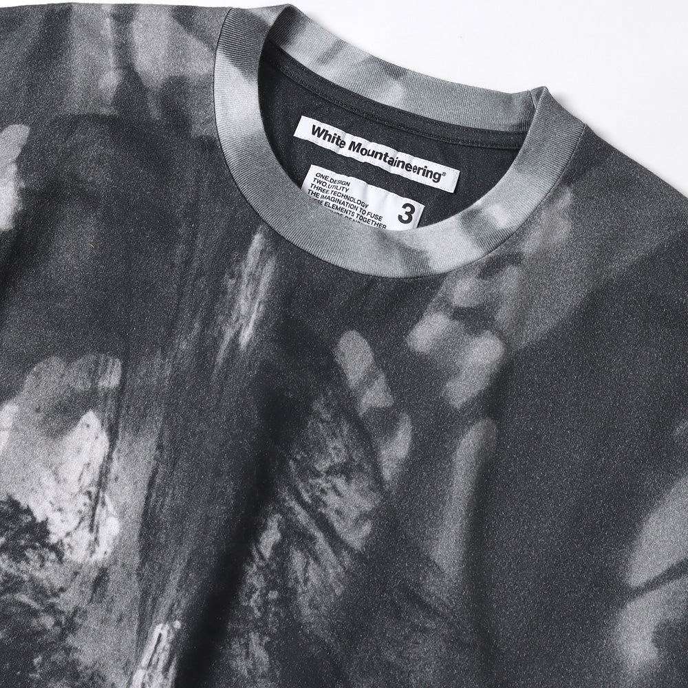 今季の象徴といえるフォトプリントを全面に乗せた、肩の落ちたワイドシルエットT。20/-の度詰め天竺をベースに京都産地でインクジェットによってプリント加工をしています。