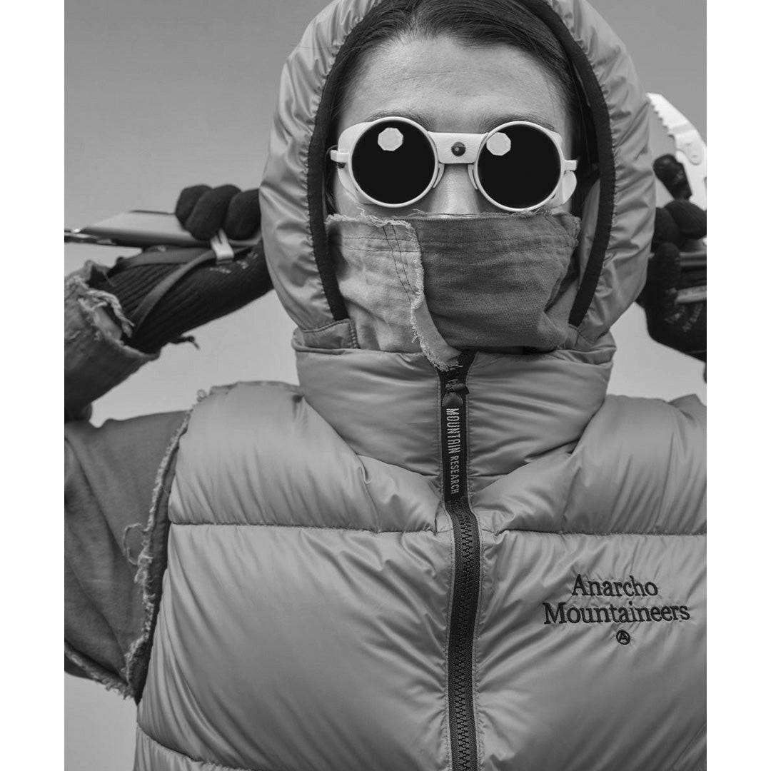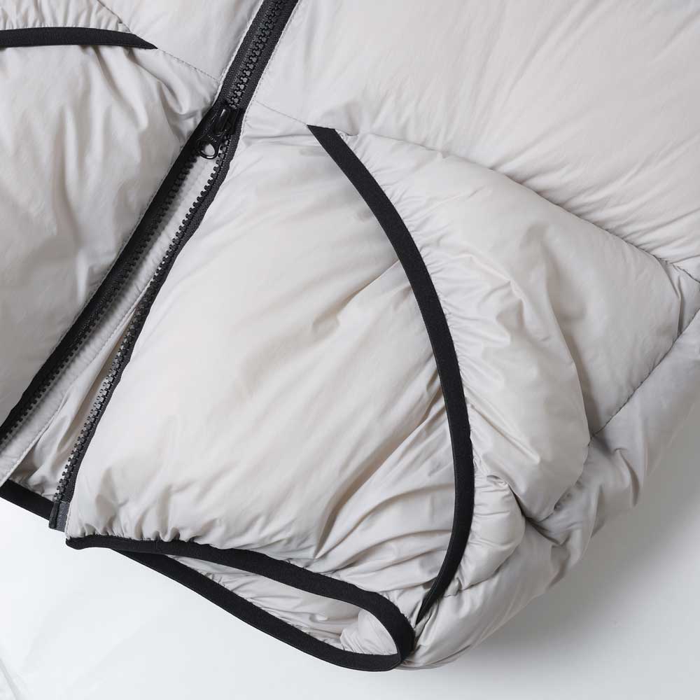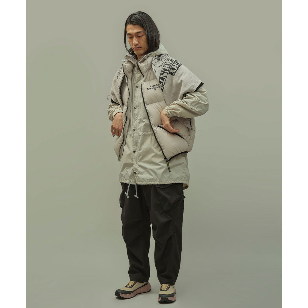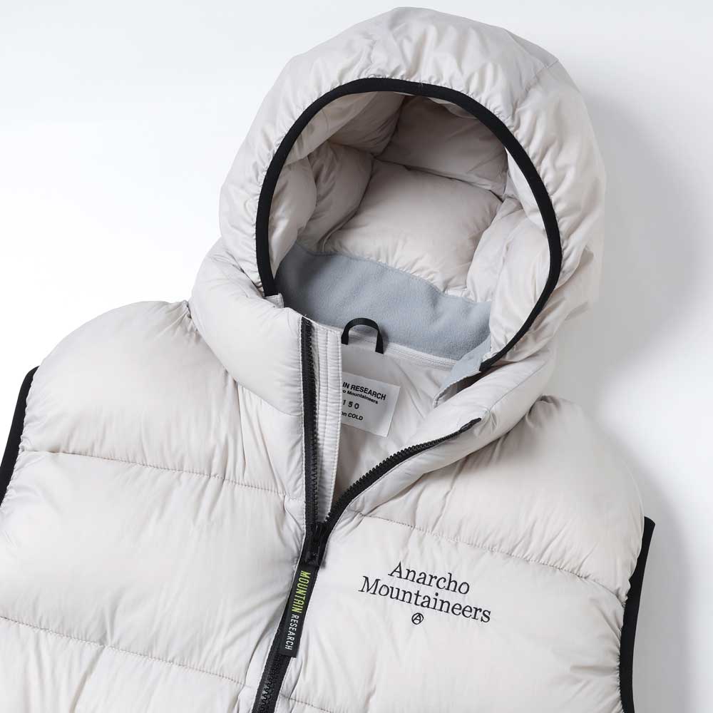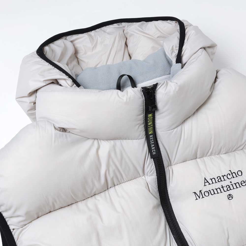 ダウンウェアブランドTAION社とのコラボレーション作となるダウンベストは、保温機能を約束するエラスティック・バインディングをフィーチャー。ダウンは800フィルパワーのホワイトダック。スムースかつ軽量なリサイクルナイロンのボディの左胸にはアイコニックなA.M.刺繍。脱着仕様のフードも注目のディティール。