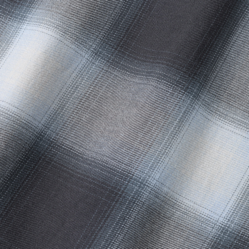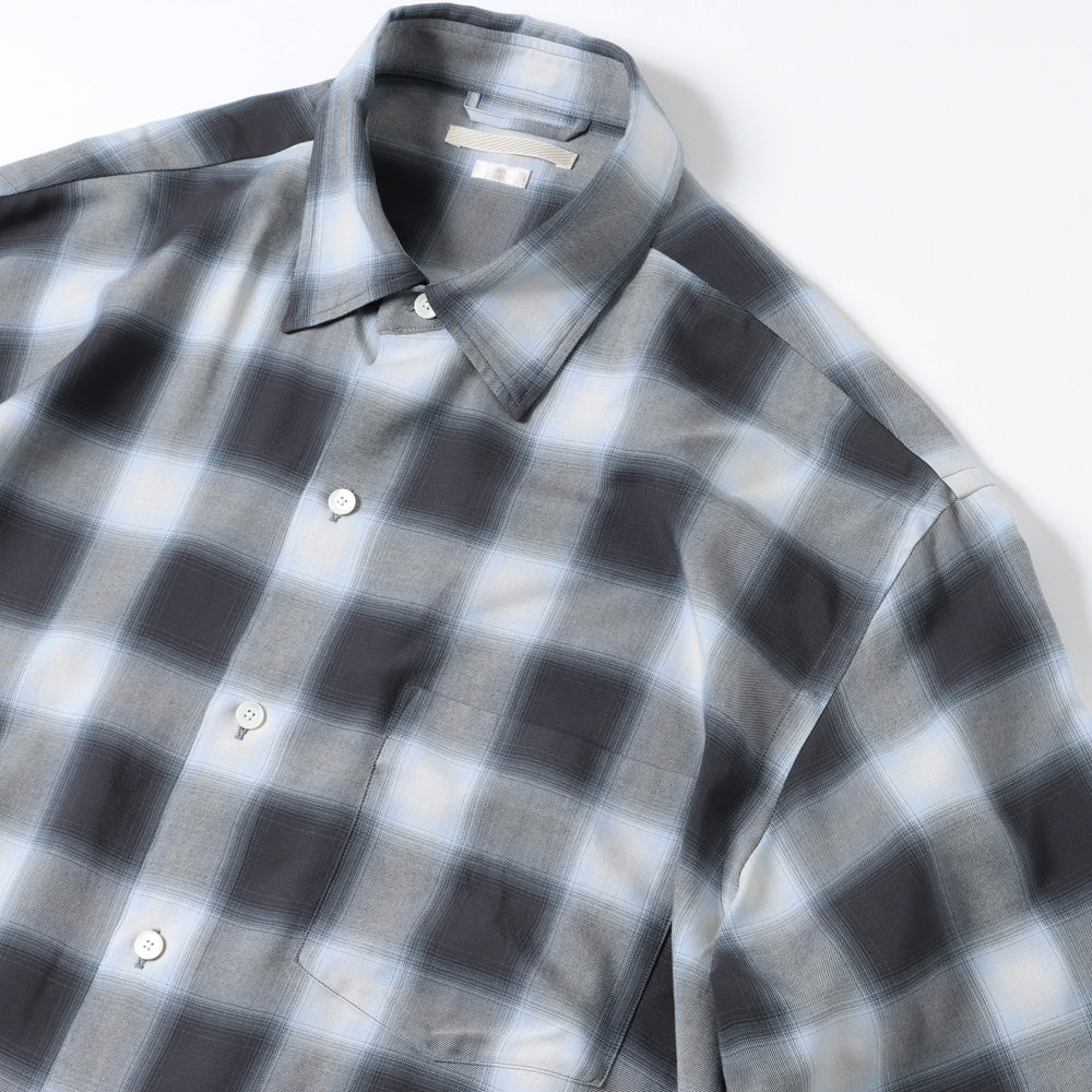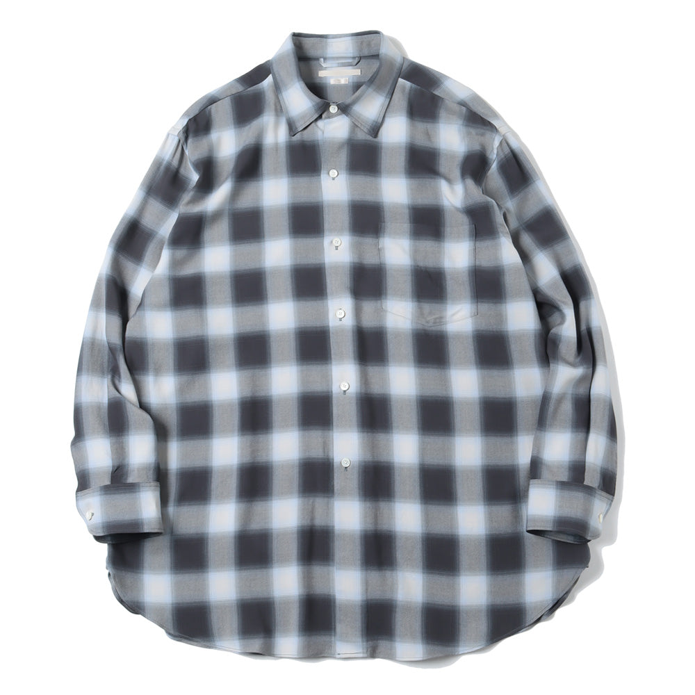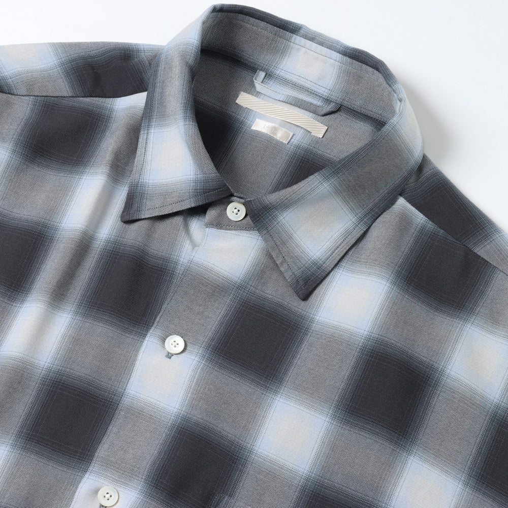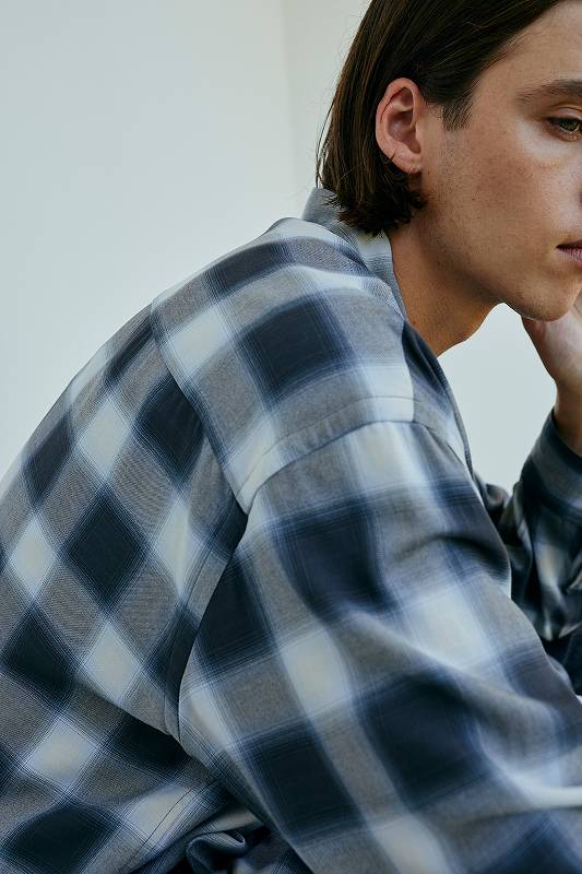 軽く羽織れるように、ゆったりとしたシルエットのシャツ。レーヨンを高密度に織り、風通しがよく、肌離れの良い速乾性が特徴、洗い込み、少し毛羽立たせています。少し退色した、古着のようなチェックに仕上げています。
