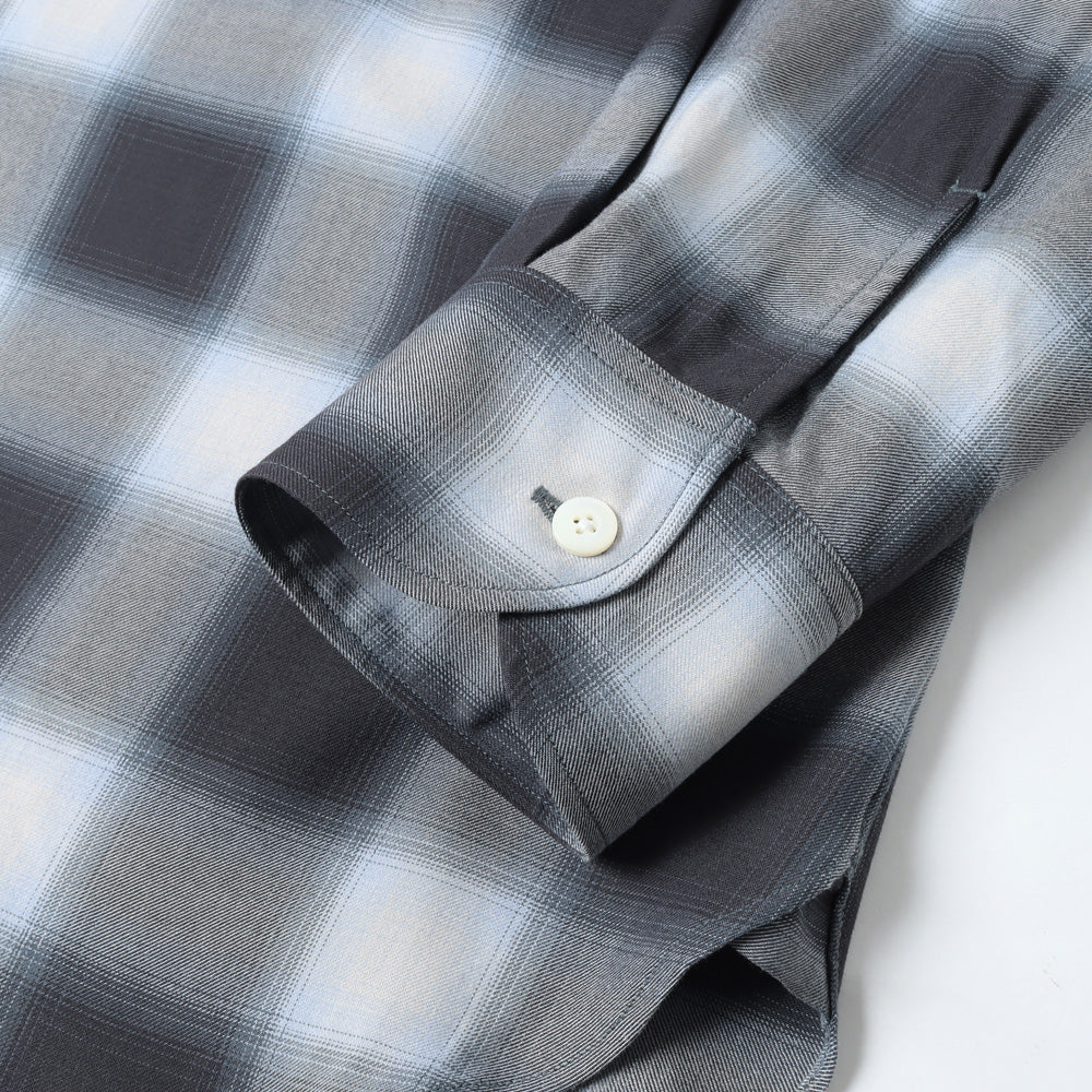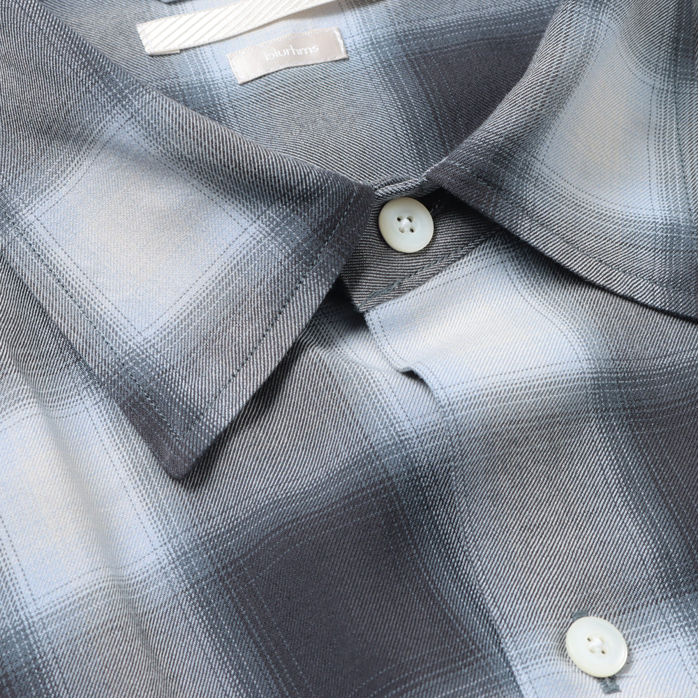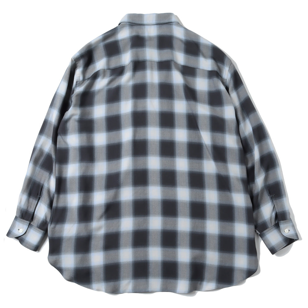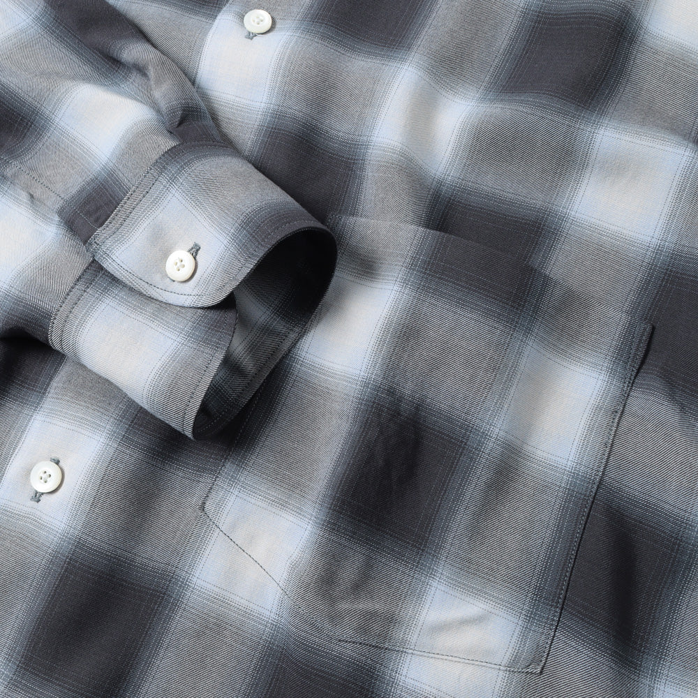 軽く羽織れるように、ゆったりとしたシルエットのシャツ。レーヨンを高密度に織り、風通しがよく、肌離れの良い速乾性が特徴、洗い込み、少し毛羽立たせています。少し退色した、古着のようなチェックに仕上げています。