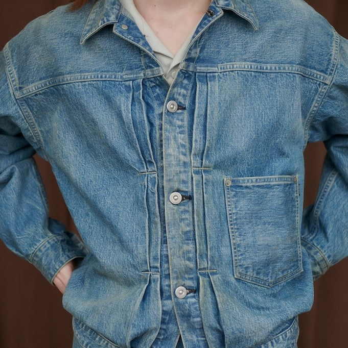 シグネチャーデニムプロダクトのワンポケットジーンジャケット。