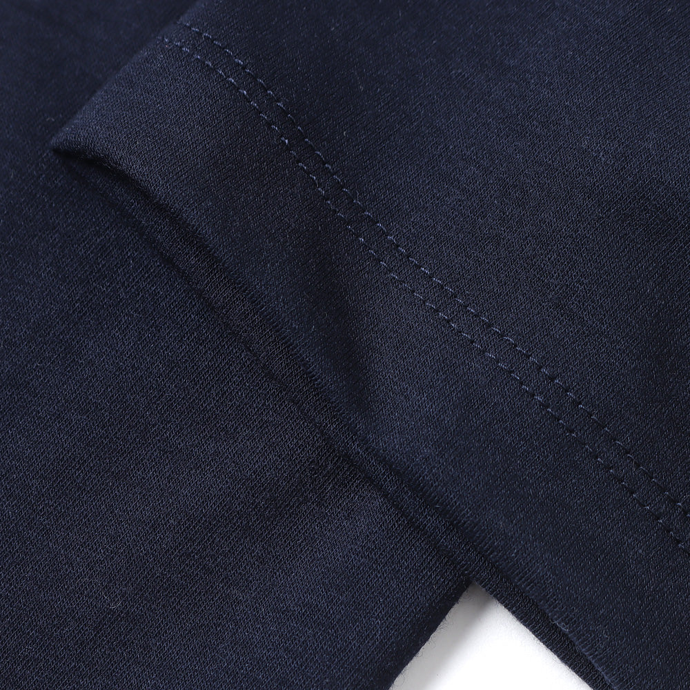 イタリアのベルガモ地区にて特徴な紡績をした糸を、和歌山市で編み上げた、ジャージ素材です。原料はカシミヤに近い繊度16.5マイクロンのウールを、特殊な紡績方法により、ウールなのに上質なコットンのような肌触りになります。世界でも唯一ココでしか出来ない技術です。通常のウールでは製品にした時におきる糸ムラやチクチクした肌触りがありますが、この紡績方法により、綺麗な目面感と程よい光沢、最高の肌触りの良さが特長の、エイトンオリジナル素材です。