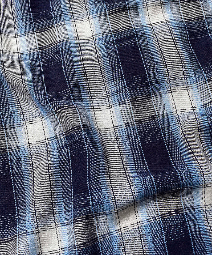 ・レーヨンを主体としシルクの特徴的なネップを活かして作製したオリジナルチェック生地を表地に採用