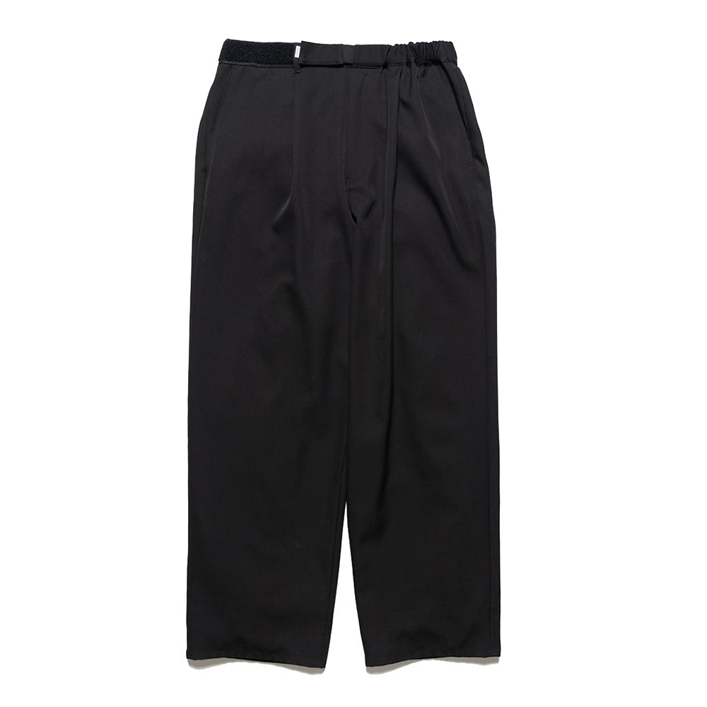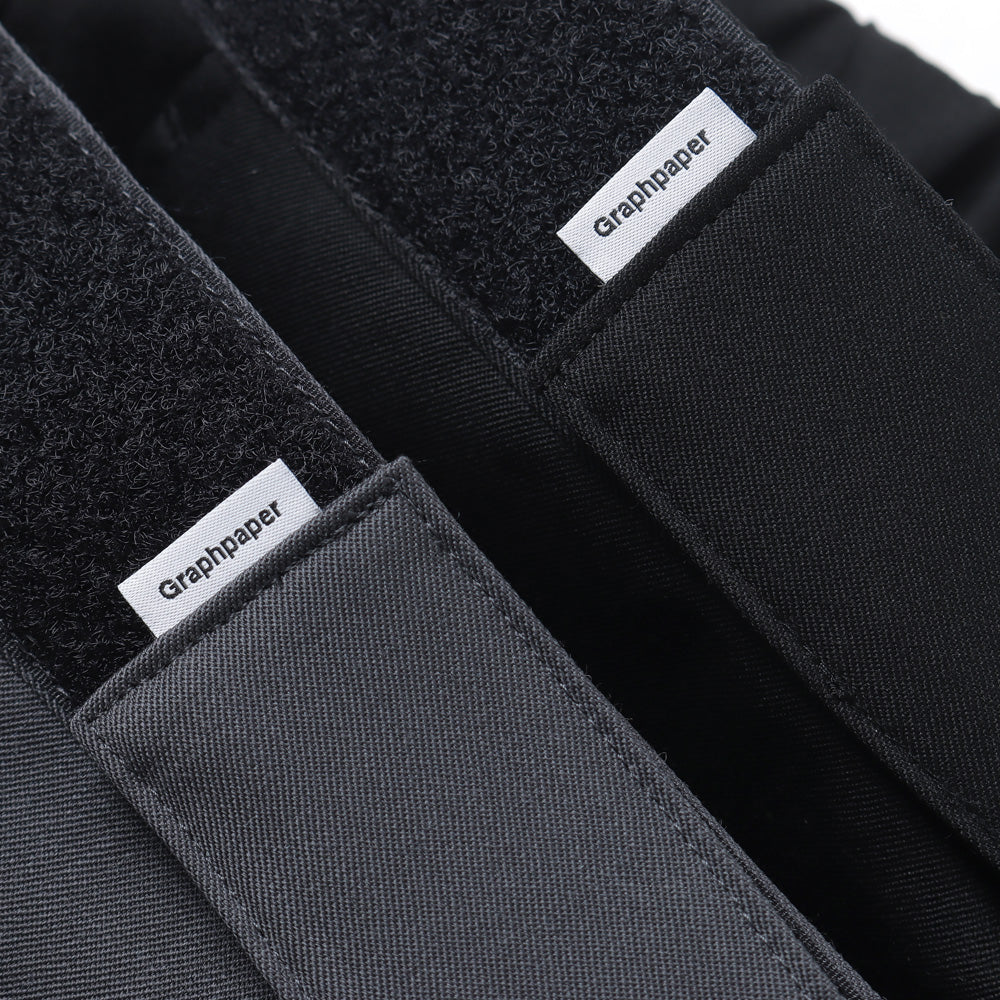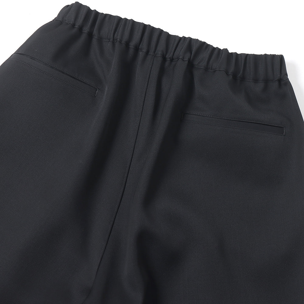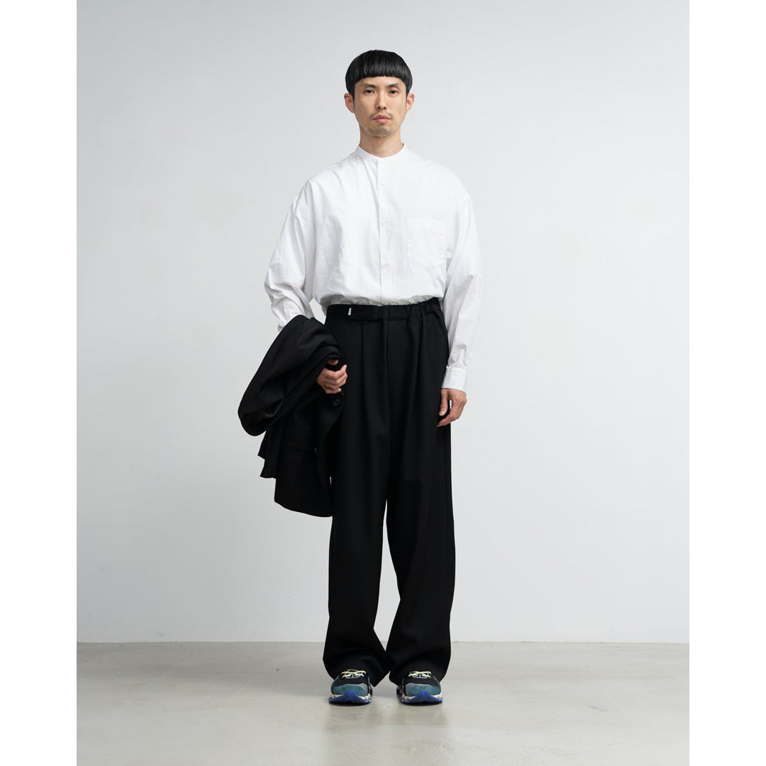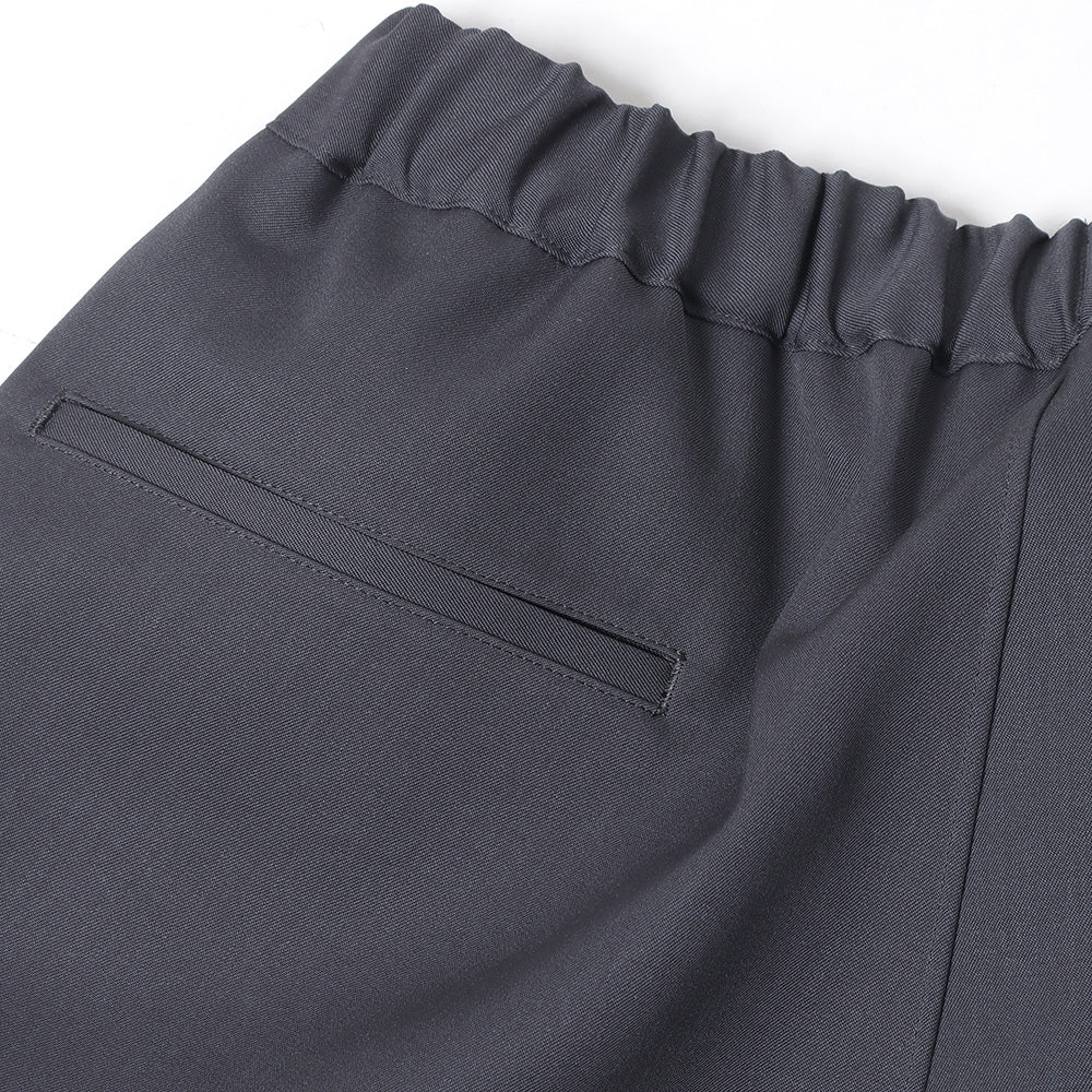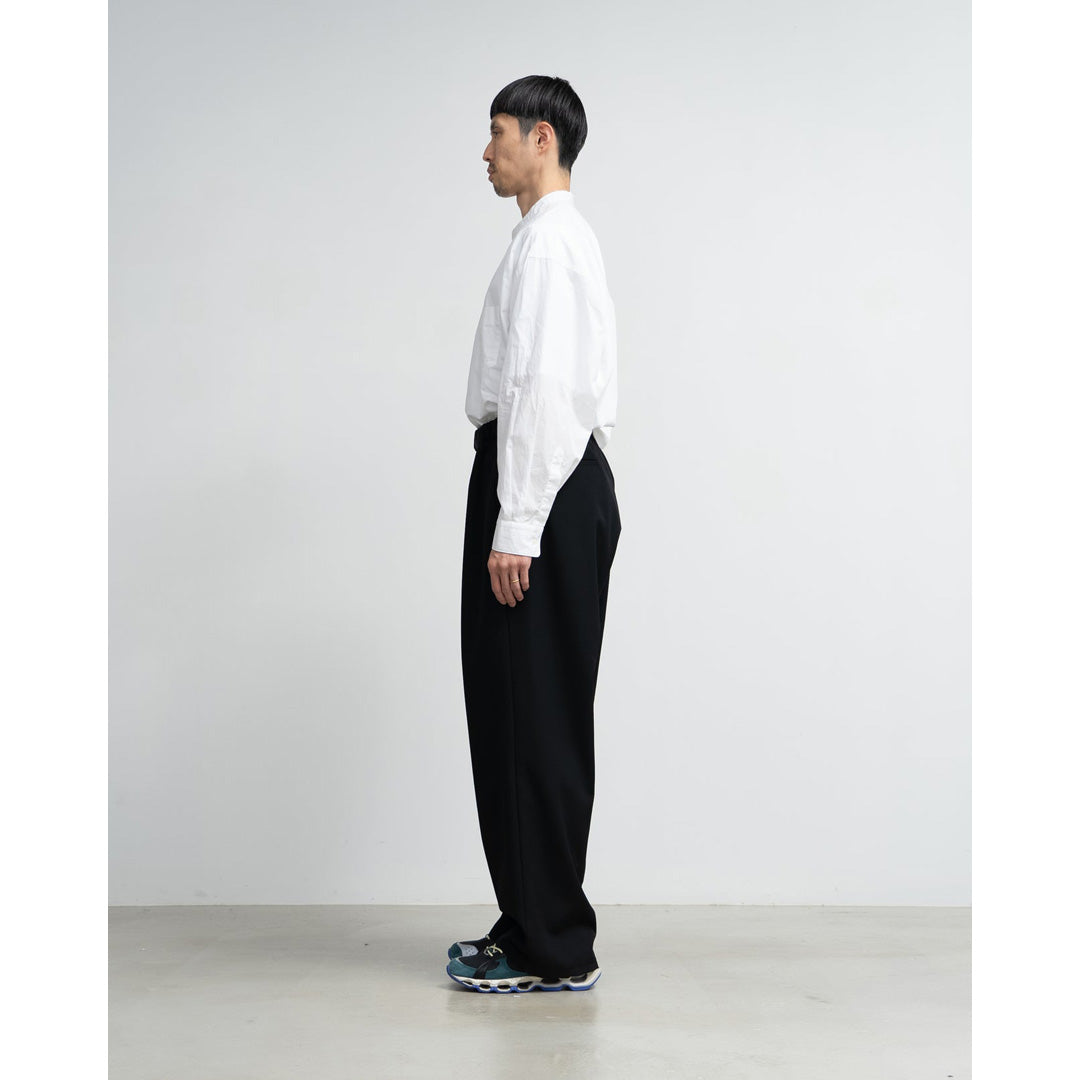 縦糸と横糸のバランスに徹底的にこだわり製作したウールギャバジンは美しい綾目と程良いハリ感、しなやかなドレープ感が特徴。特殊な樹脂をウール繊維の内部まで染み込ませることでフィラメントのような光沢とクリアな質感に仕上げている。ウエストのサイズを簡単に調整できてシルエットもアレンジできるGraphpaper定番のシェフパンツ。深めの股上でボリュームのあるワイドシルエット。
