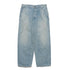 130年もの歴史を誇る米国Cone Denim社が作る13.75オンスのセルビッチデニム。今シーズンよりブラックデニムが仲間入り。旧式力織機でゆっくりと織り上げることで生まれる、生地表面のざらっとした凹凸やムラがデニム本来の風合いを感じさせる魅力的な素材。ウエストにはタックが入り、ヒップからワタリにかけて適度な余裕があるワイドストレートパンツ。長く使い込まれたような淡い色合いが特徴のライトフェイド。