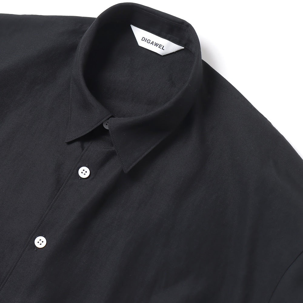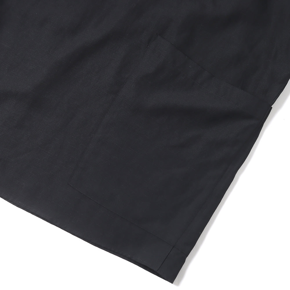 軽糸にヴィスコース×ポリエステル糸、緯糸にポリエステル×リネン糸を交織した素材。リネンのスラブ感にタンブラー加工でナチュラルはシワ感をプラス。