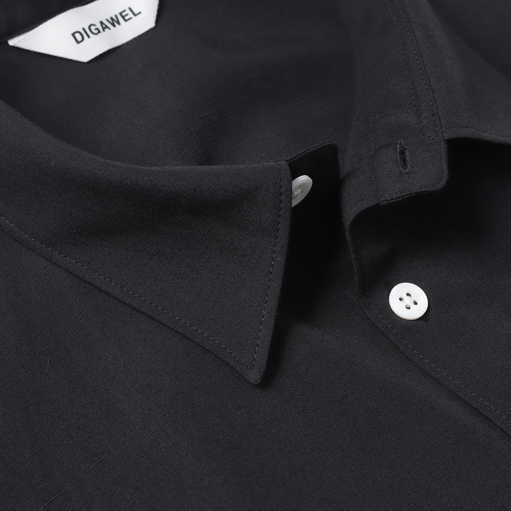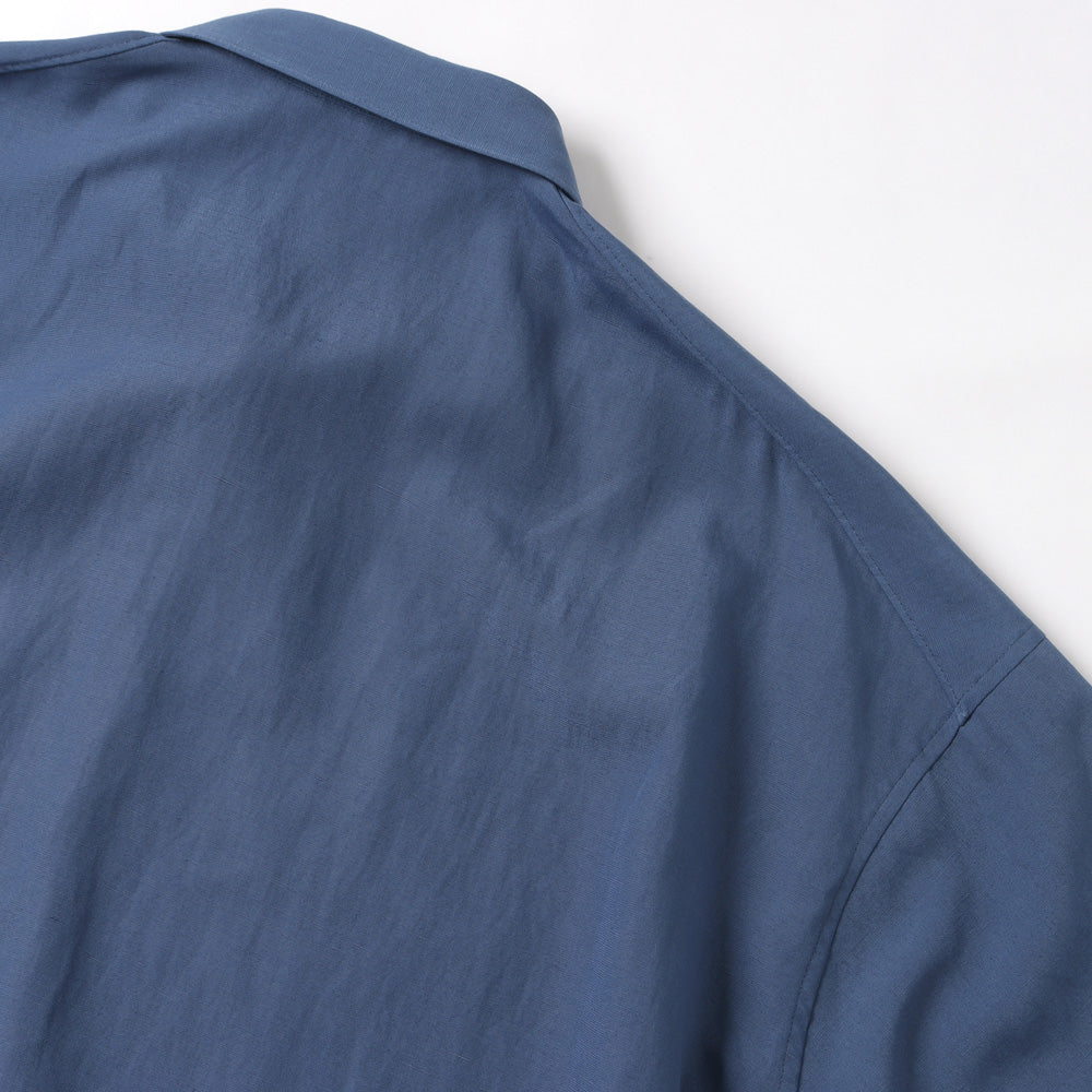 軽糸にヴィスコース×ポリエステル糸、緯糸にポリエステル×リネン糸を交織した素材。リネンのスラブ感にタンブラー加工でナチュラルはシワ感をプラス。