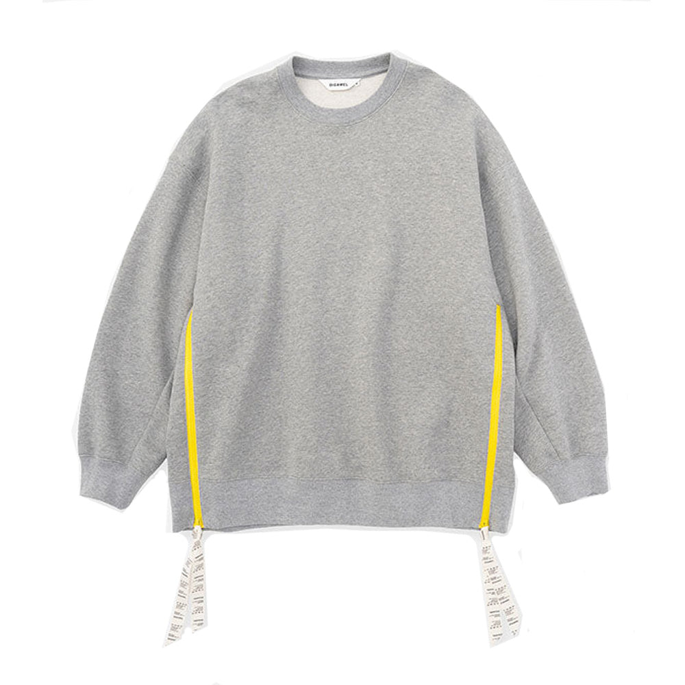 やや大きめに設定したボディに、サイドジップが見え隠れする位置まで脇線を前身頃に移動しています。 裏糸に10番を双糸撚りした糸を配し、立体感のあるループが膨らみを引き出したヘビーウェイトな裏毛を使用しています。