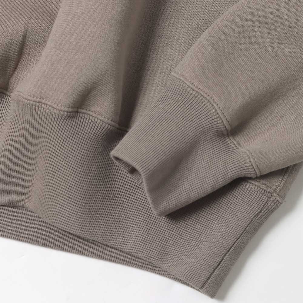 希少な吊り編み機を使い、上質なコットンをゆっくりと時間をかけて編み上げたスウェット素材です。 この編み機独特の伸縮性が高く、空気を含んだような膨らみがあり、滑らかで柔らかい風合いが特徴です。