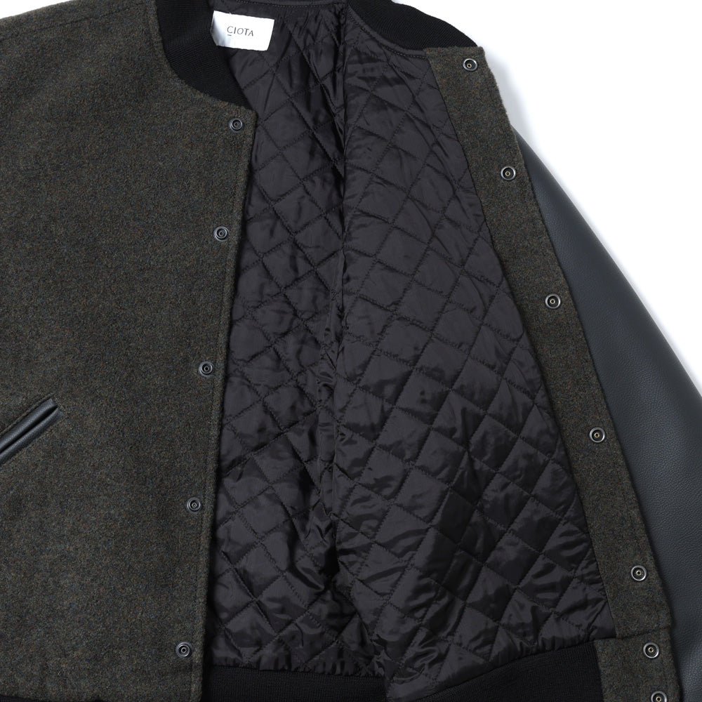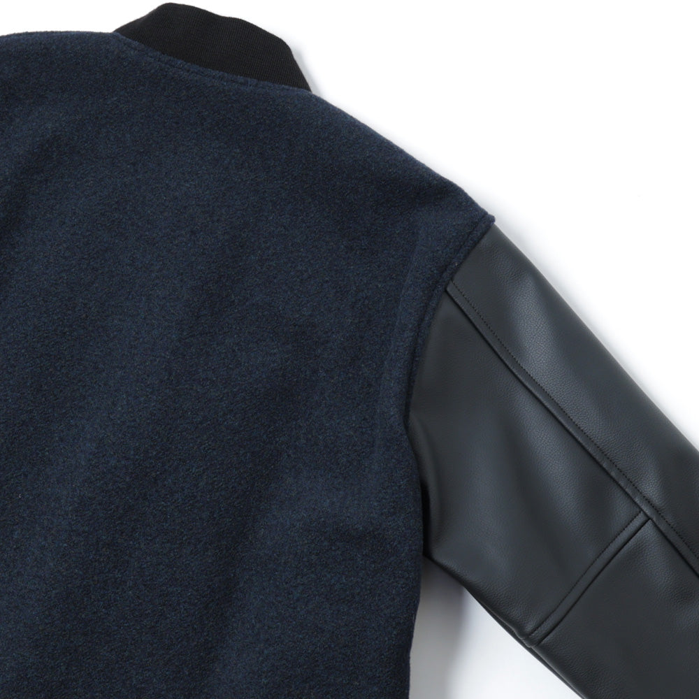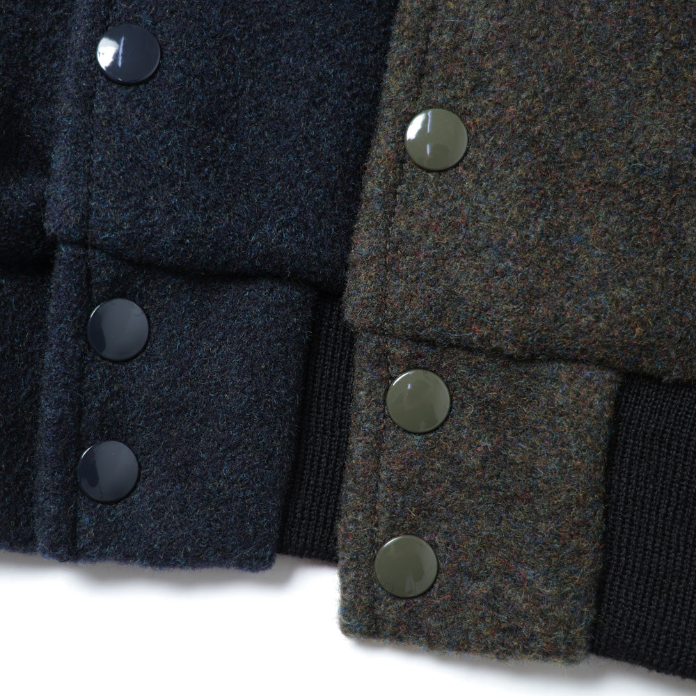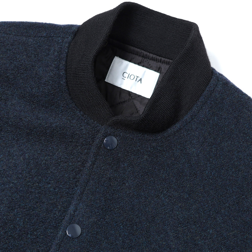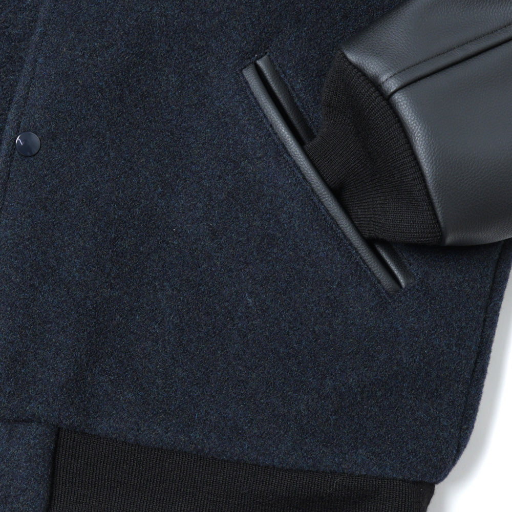 身頃には上質な原綿であるスビンコットンと、英国式紡績機でゆっくり紡がれた素朴なシェットランドウール、この相反する2者が組み合わさった、究極のヘビーメルトンです。