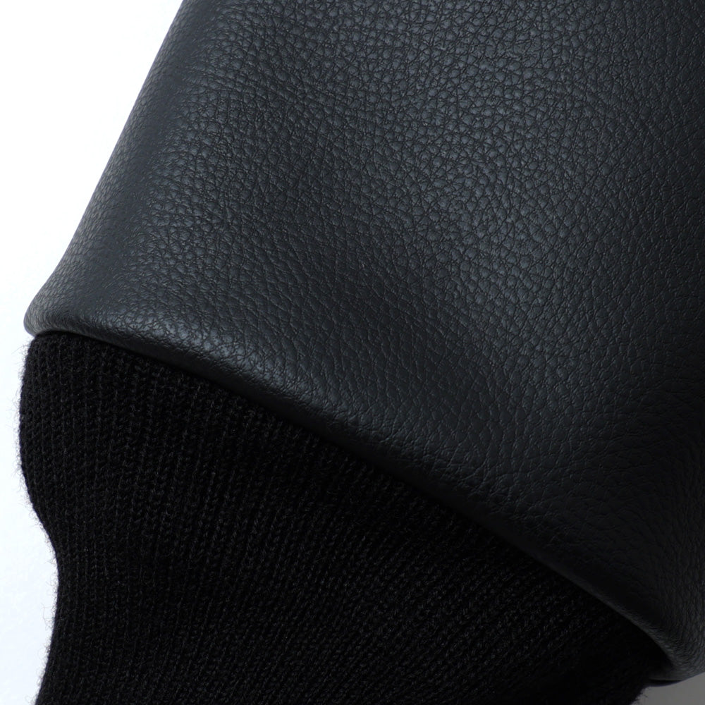 袖にはエコレザーを使用。裏地には機能中綿キルトを使用。その中綿は熱伝導性が低いTORAYの超繊細繊維を採用。いったん取り込んだ熱を逃しにくく、同じ層で比べればダウンの2倍の暖かさを誇ります。