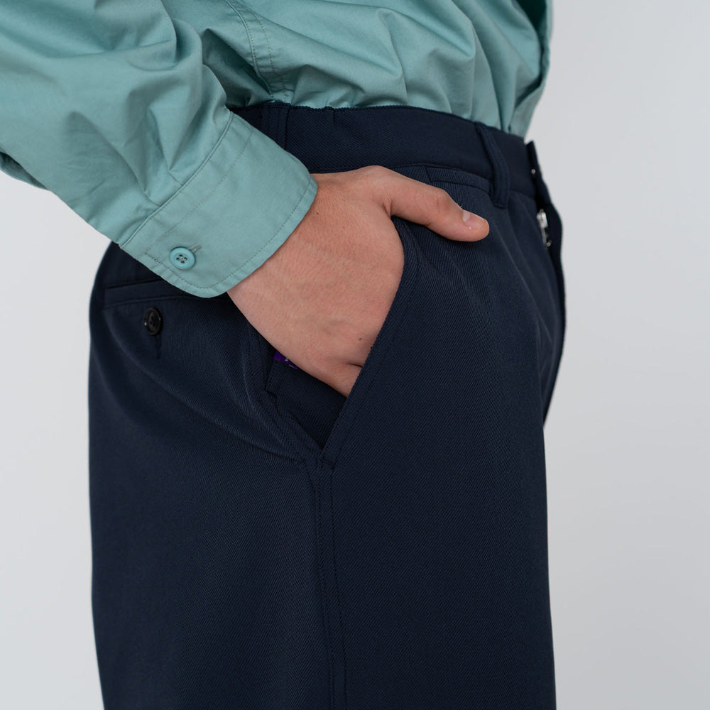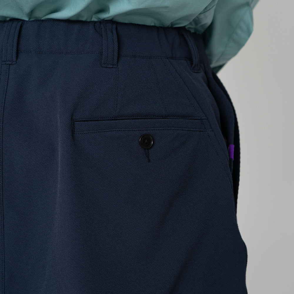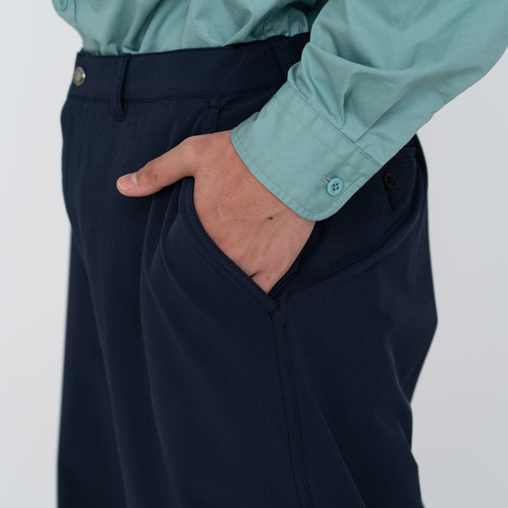 ・リサイクルポリエステルストレッチツイルを使用したワイドテーパードパンツ