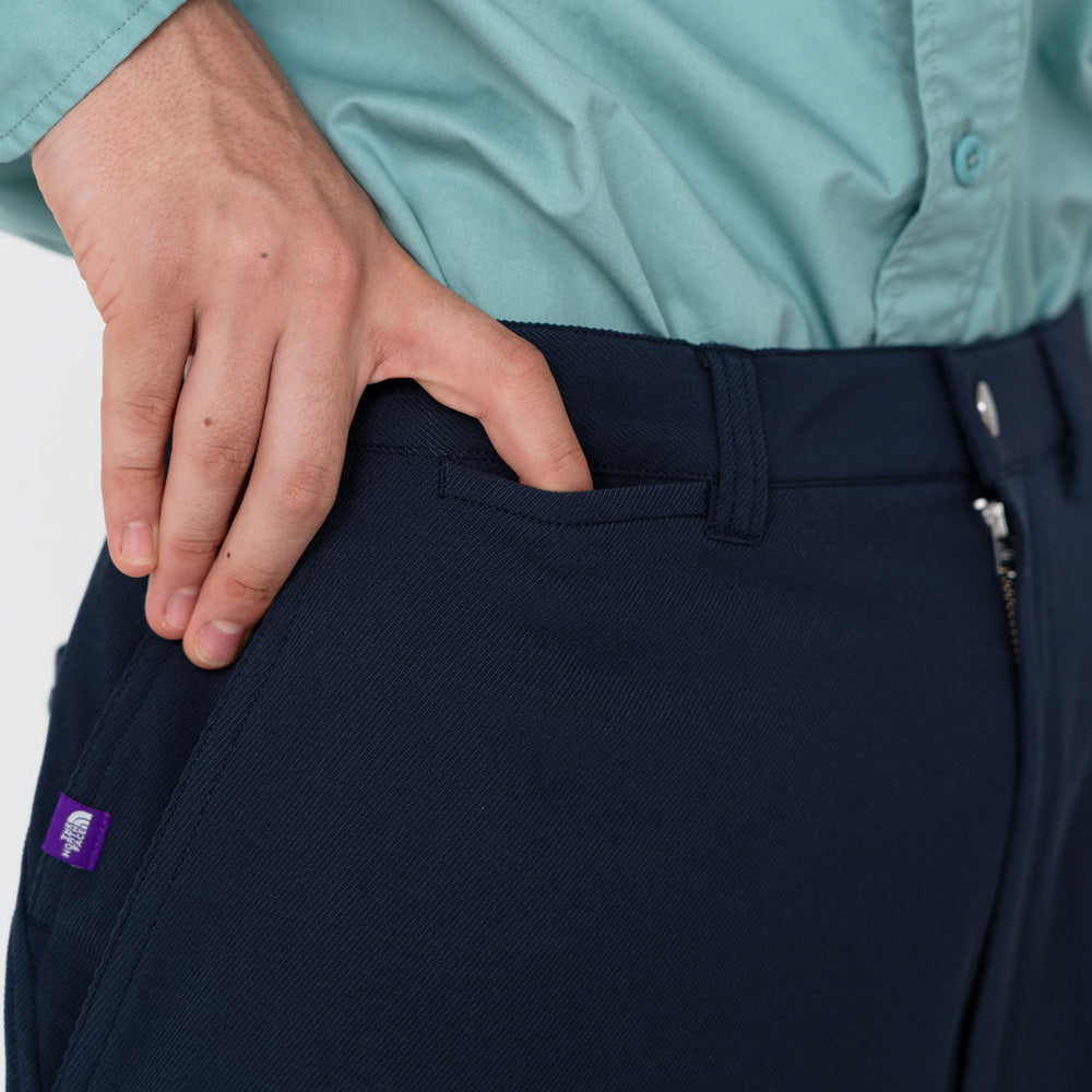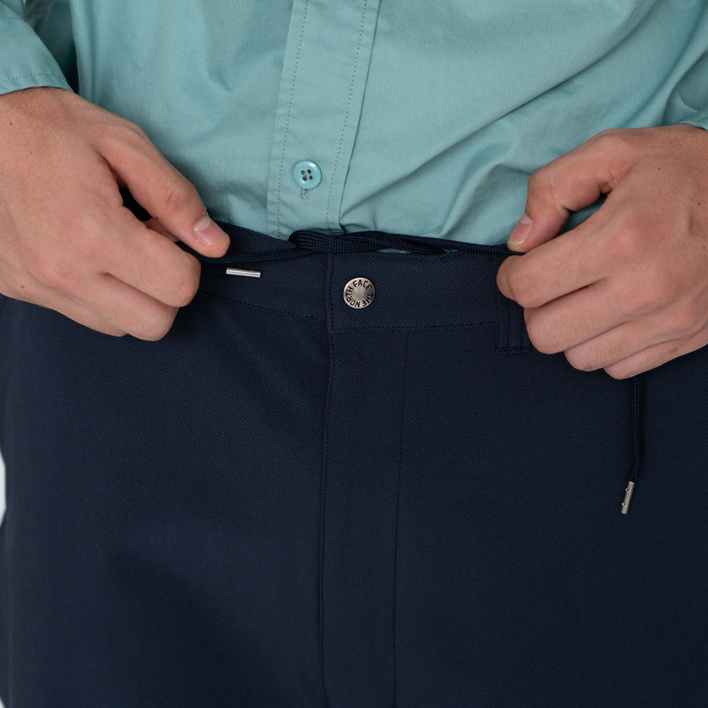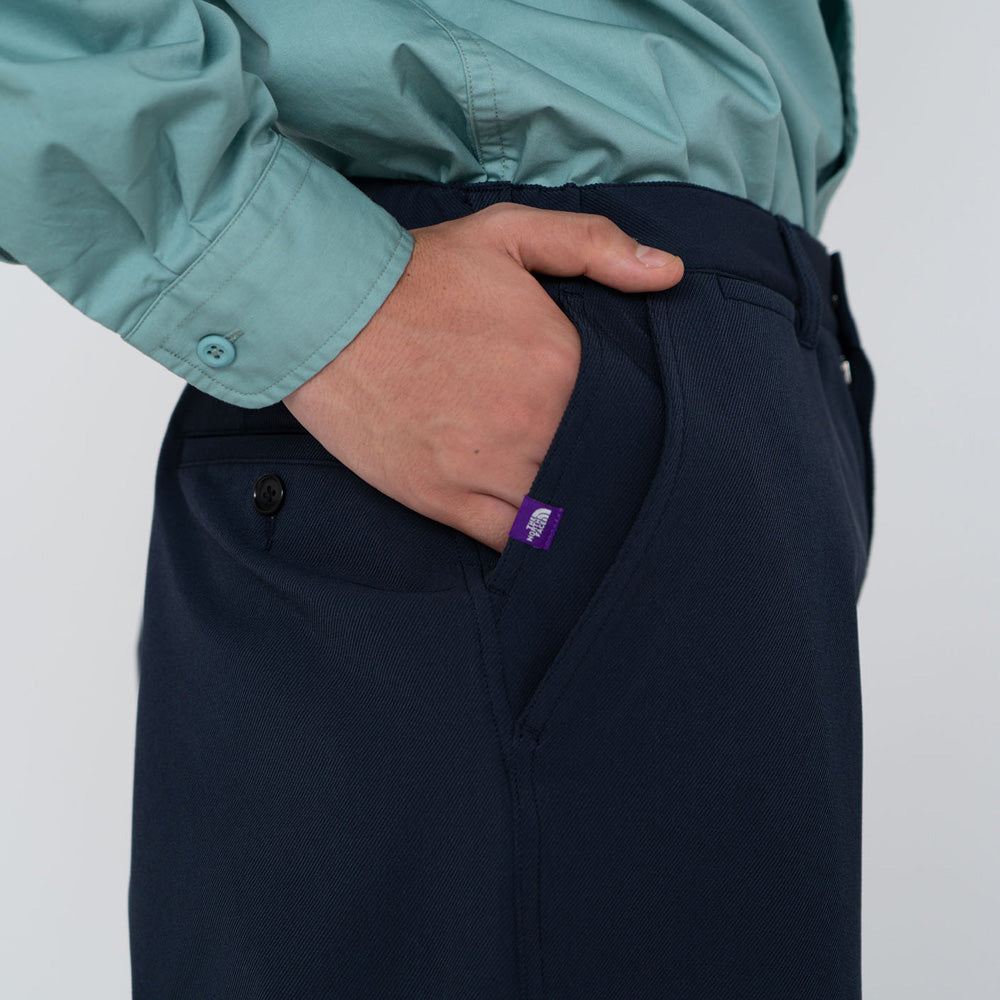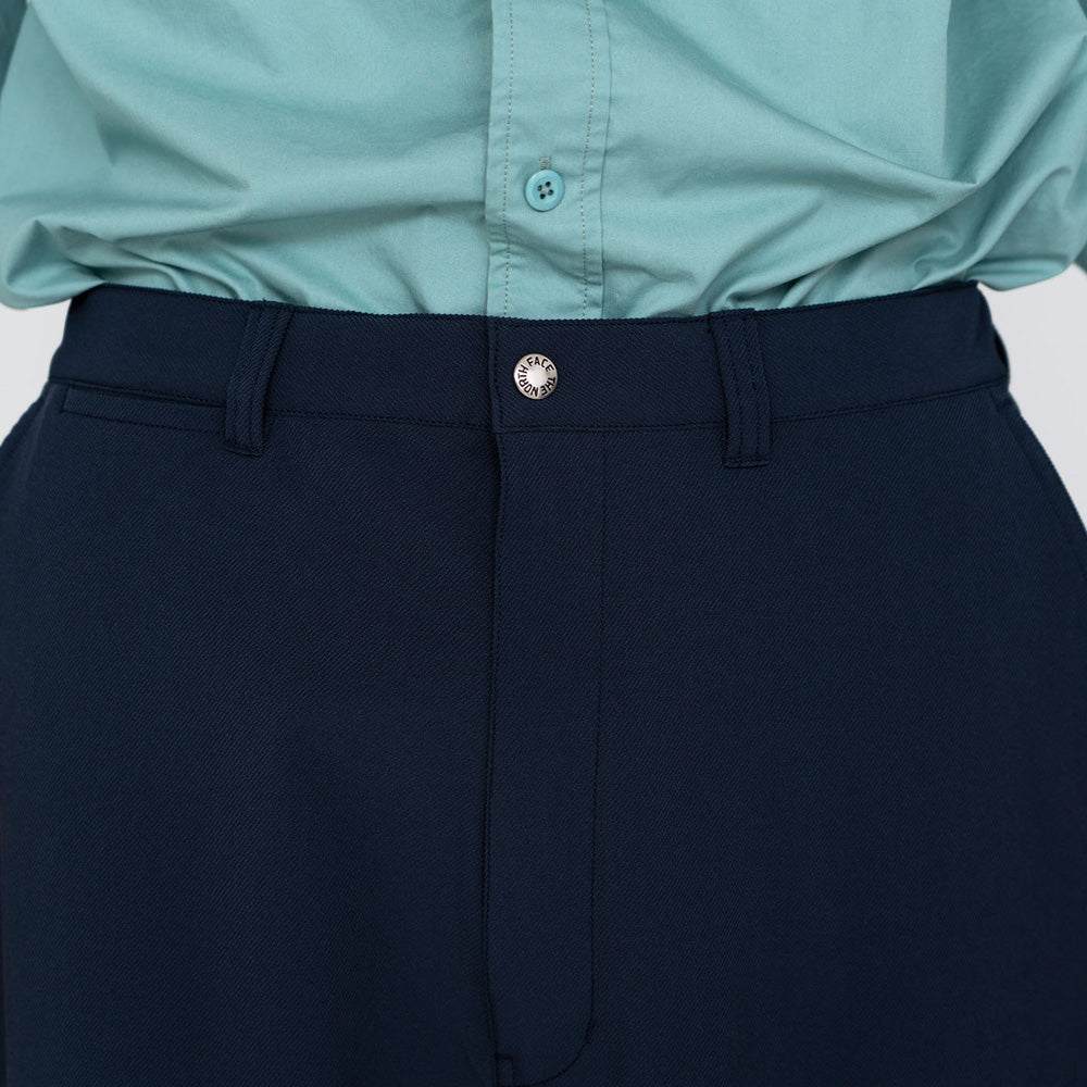 ・リサイクルポリエステルストレッチツイルを使用したワイドテーパードパンツ