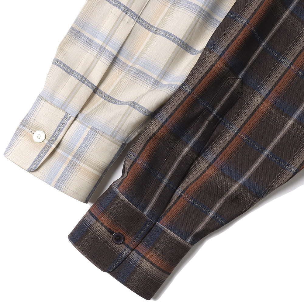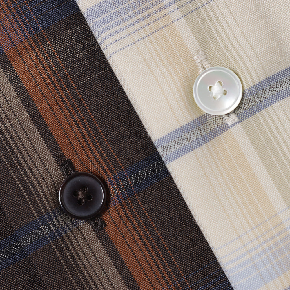 Super120's原料を超細番手に紡績し、しっかりと打ち込んで織り上げた、薄くてハリのあるチェック素材です。