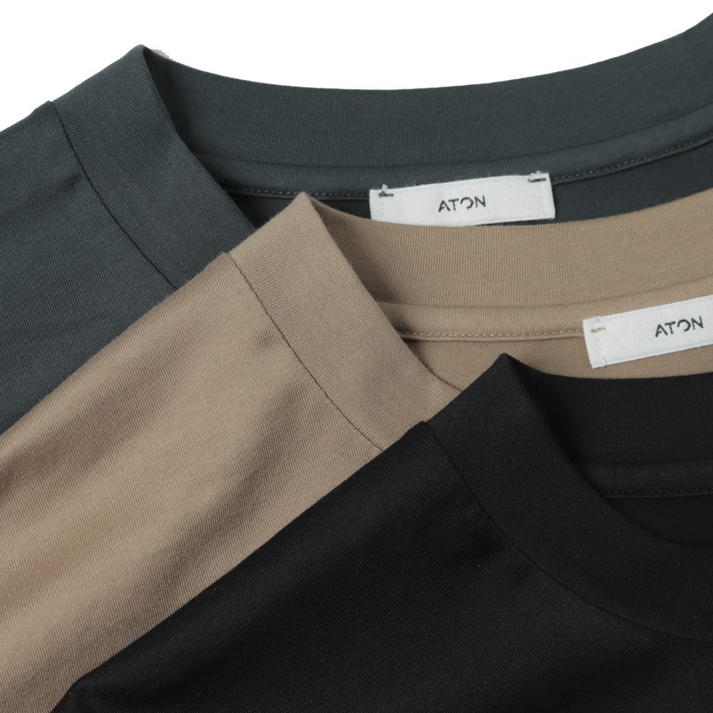 インドの手摘みのスヴィンコットンを、和歌山市のニッターさんにて編まれた素材です。双糸にすることにより、光沢感としなやかさが特徴のエイトンオリジナルジャージ素材です。
