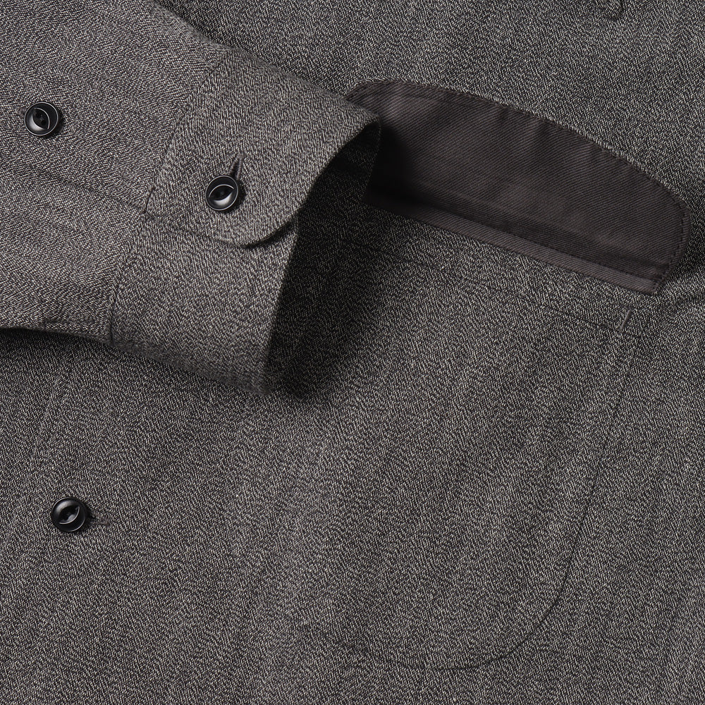 ミッドセンチュリー期のアメリカをイメージしてデザインされたこのシャツは、高度なテクニックが必要される中縫いで作られたポケットや、ステッチをなるべく入れずにAMFステッチで仕上げられているのでとてもドレッシーな表情を持っています。