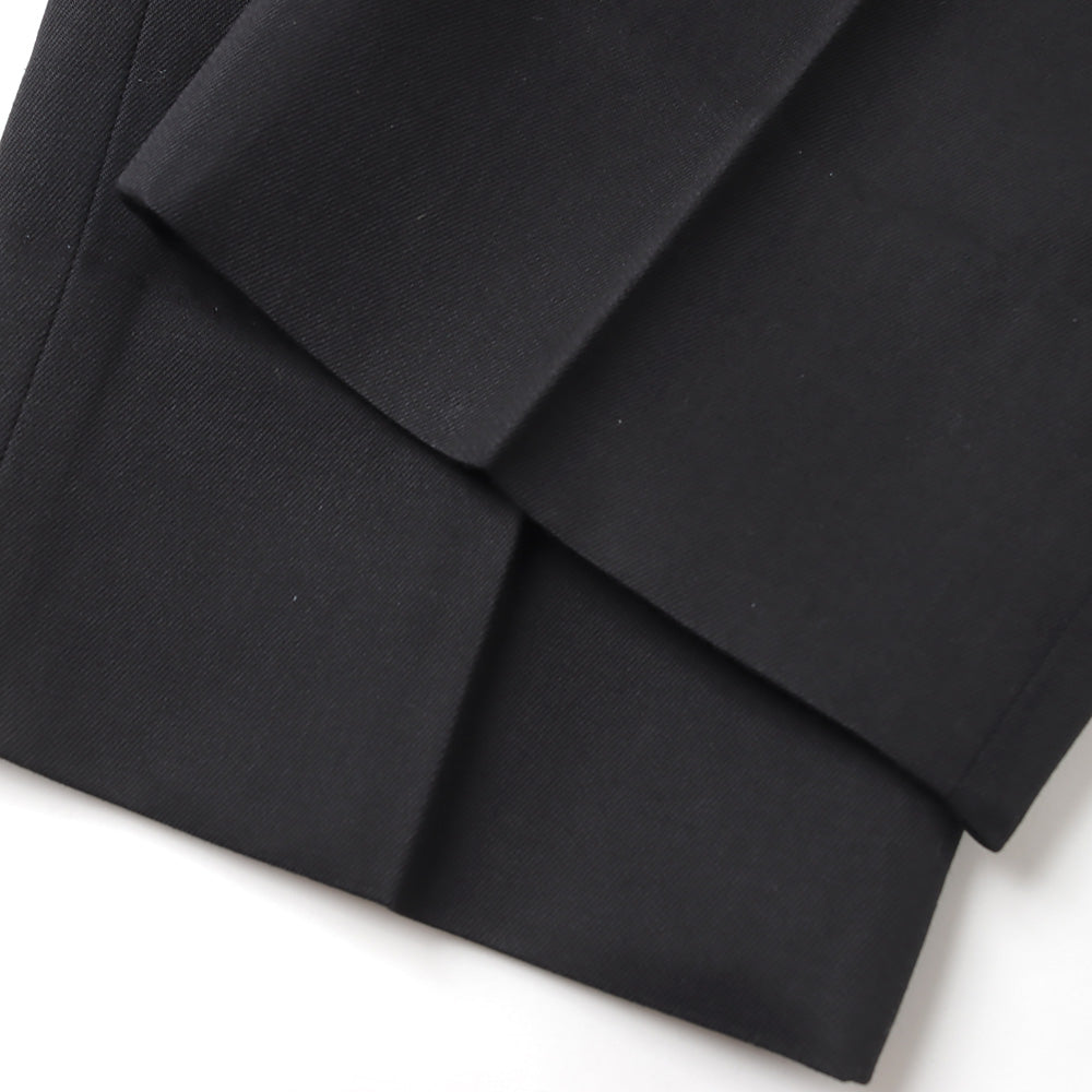 ・経糸にテンセル🄬、緯糸にウール糸を採用し、美しいドレープ感と風合いを実現したオリジナルブラックデニムを採用