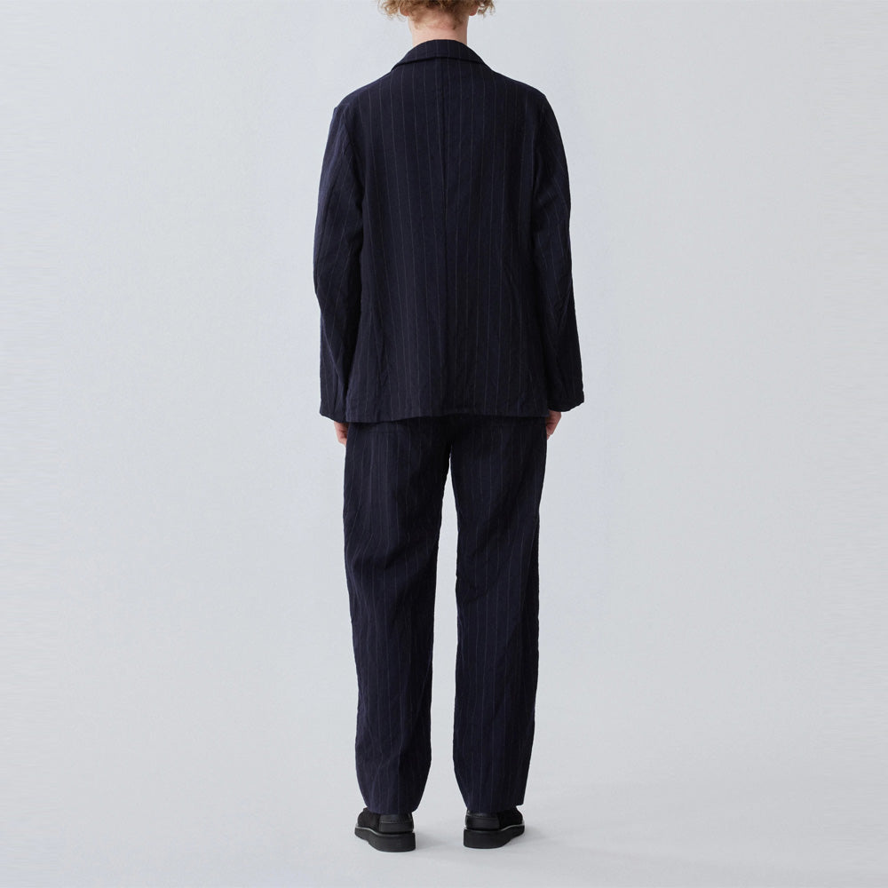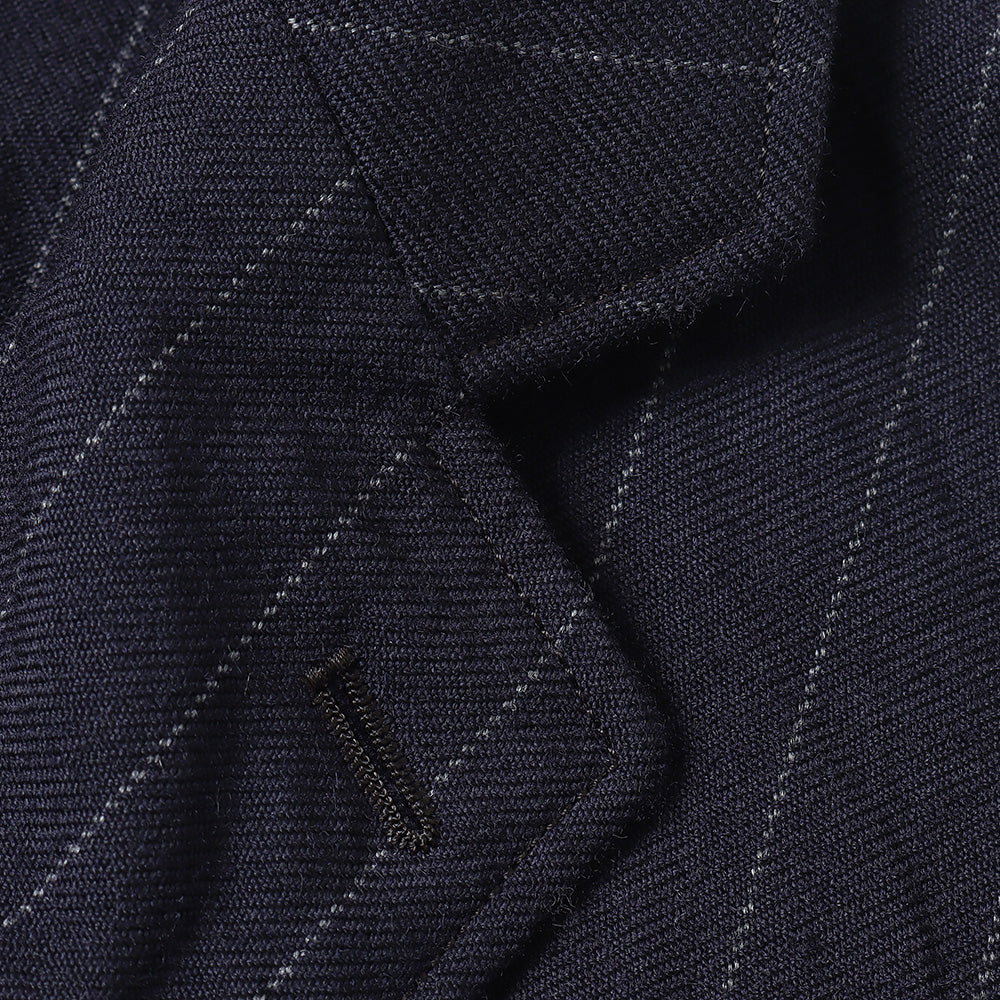 ブリティッシュウールを高密度に打ち込み製作した、オリジナルのチョークストライプ 。